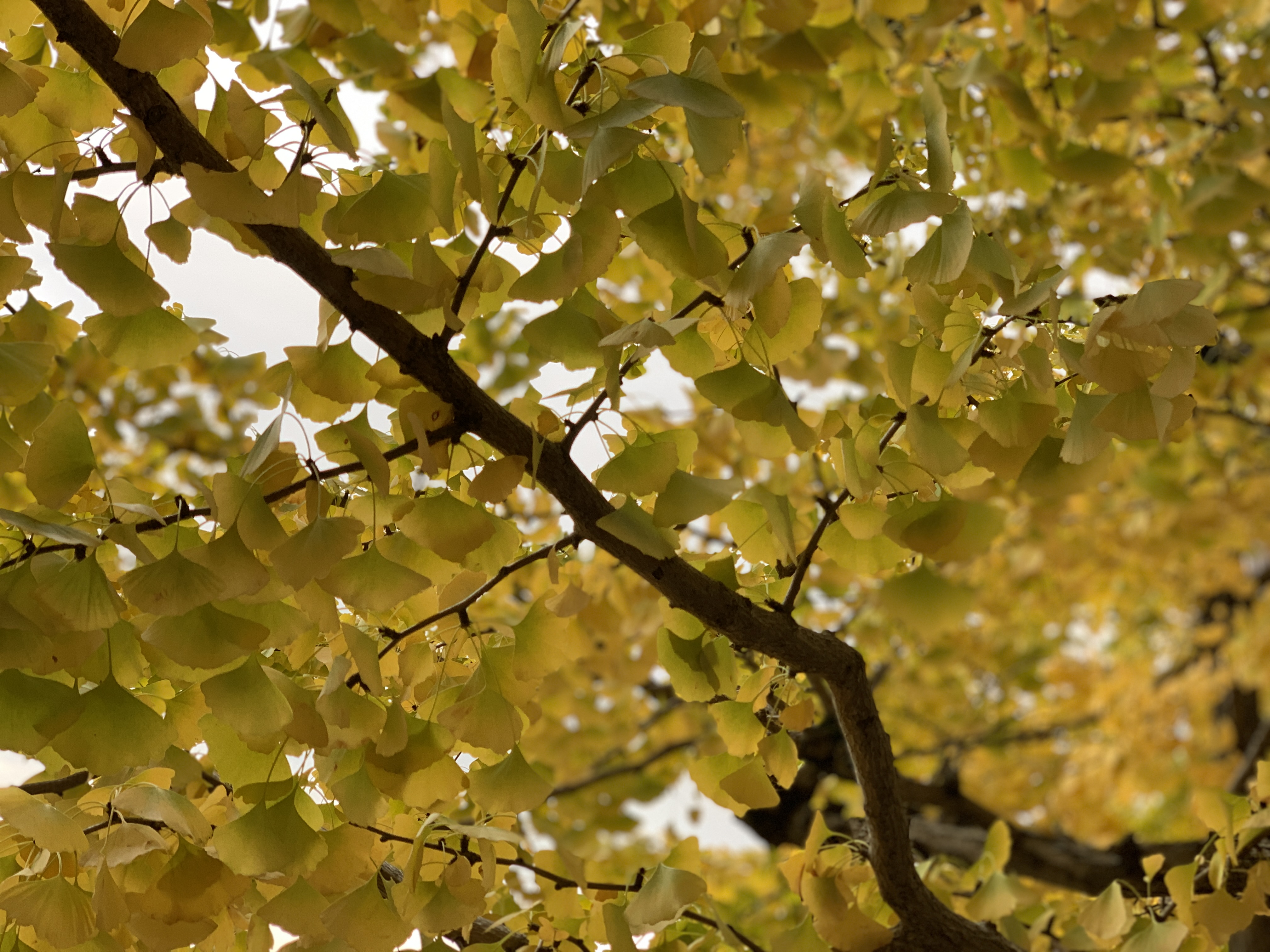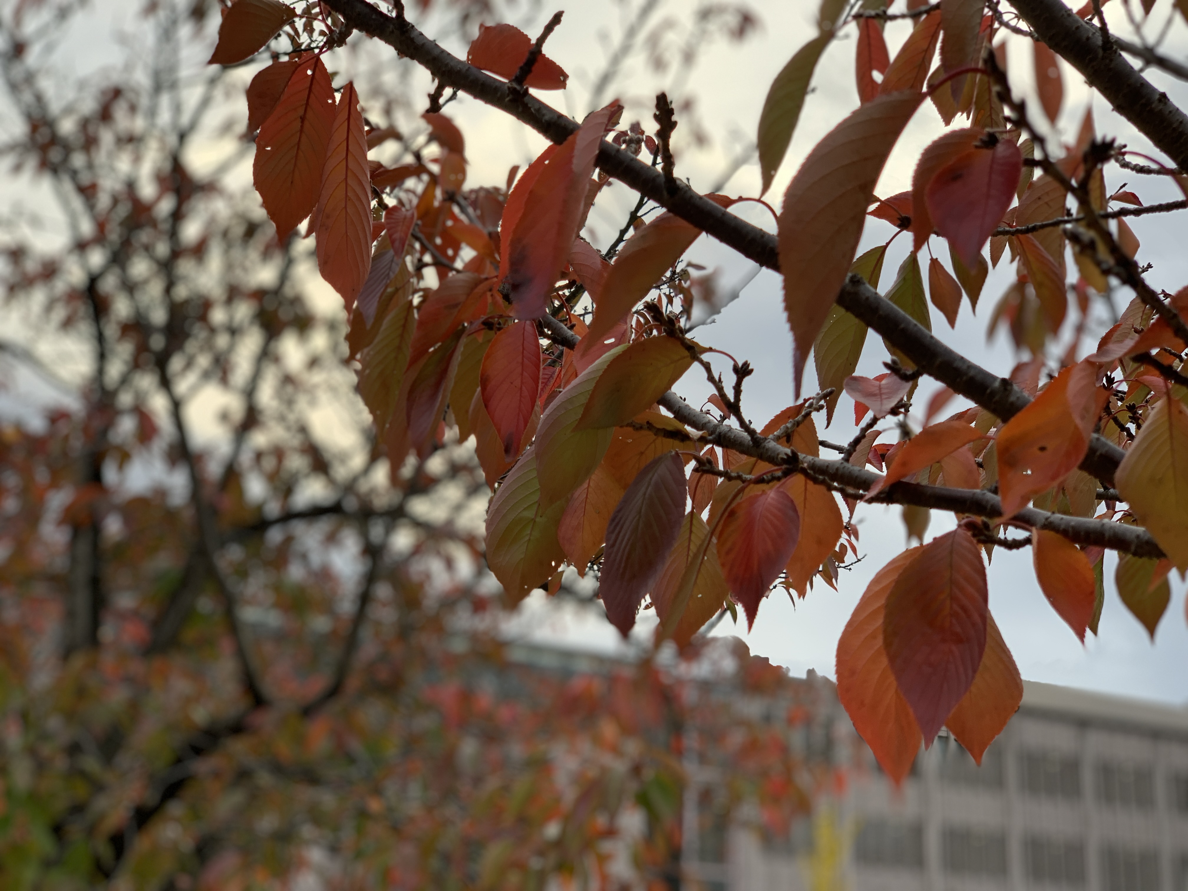 鉄棒沿いの桜並木や中高側の銀杏も、深紅色や薄紅色、黄色へと色づき、その彩り具合も様々です。