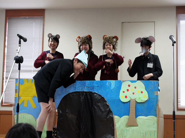 6年生はこの日のために、セリフを覚えることはもちろん小道具の用意も自分たちで行い、