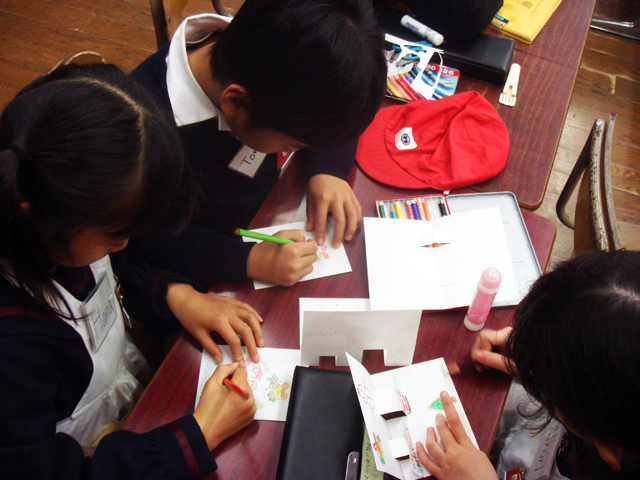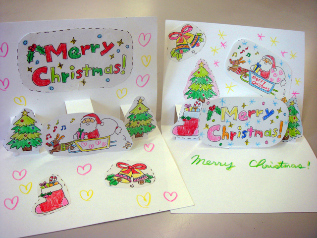 2学期最後の英会話の授業では、毎年恒例のクリスマスカード作りを行いました。