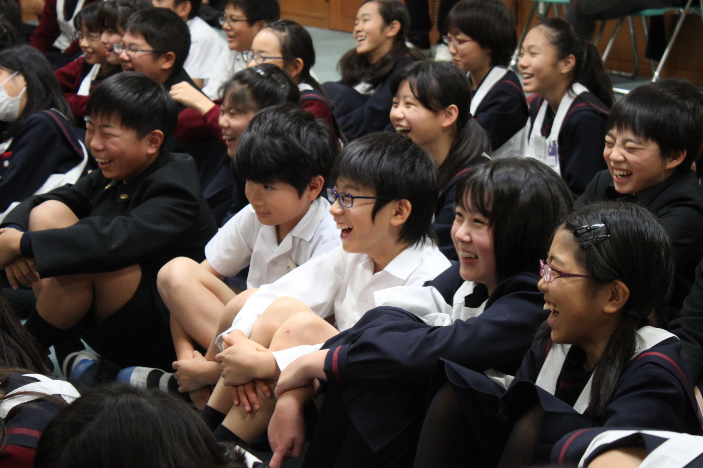 児童たちはかい枝さんとダイアンさんの落語に大笑いし、