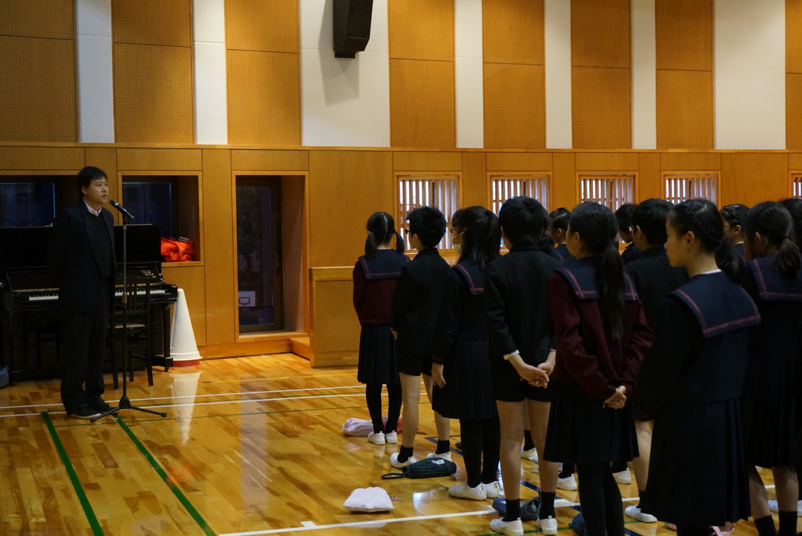 本日アリーナにて2学期の終業式を行いました。 校長先生からは、これまでの日記を読み返して、1年を振り返りましょうというお話がありました。そのあと、生徒指導の先生から、冬休みの過ごし方についてお話がありました。また、この1年間、週番として活躍してくれた6年生に、感謝を込めてみんなで拍手を送りました。 3学期、また元気に会えることを楽しみにしています。