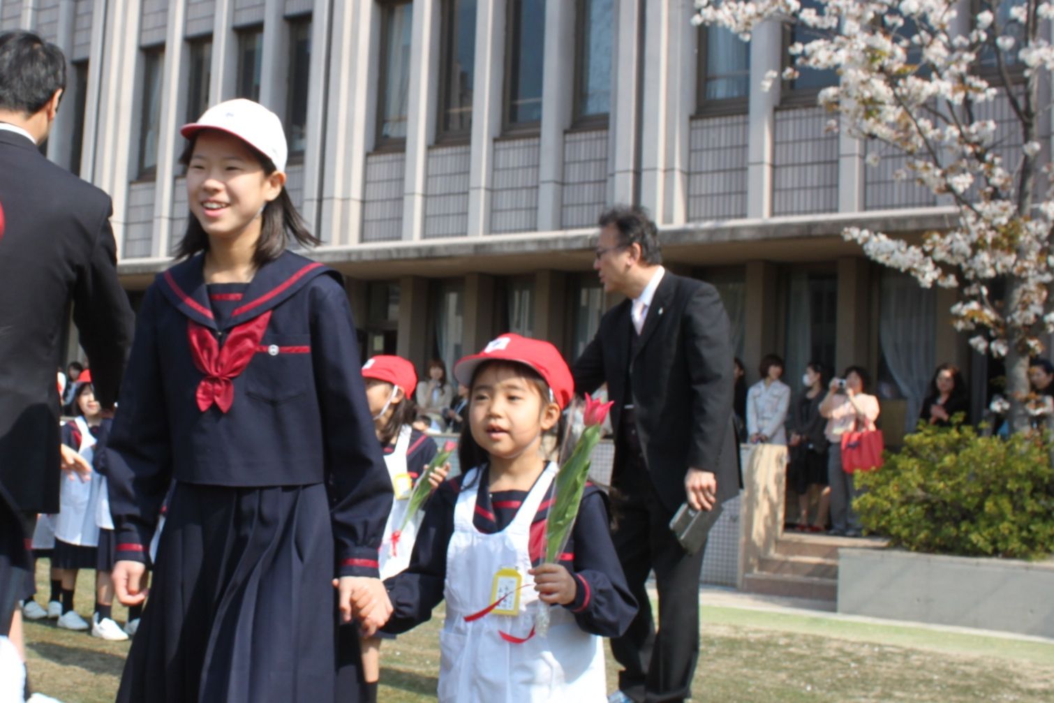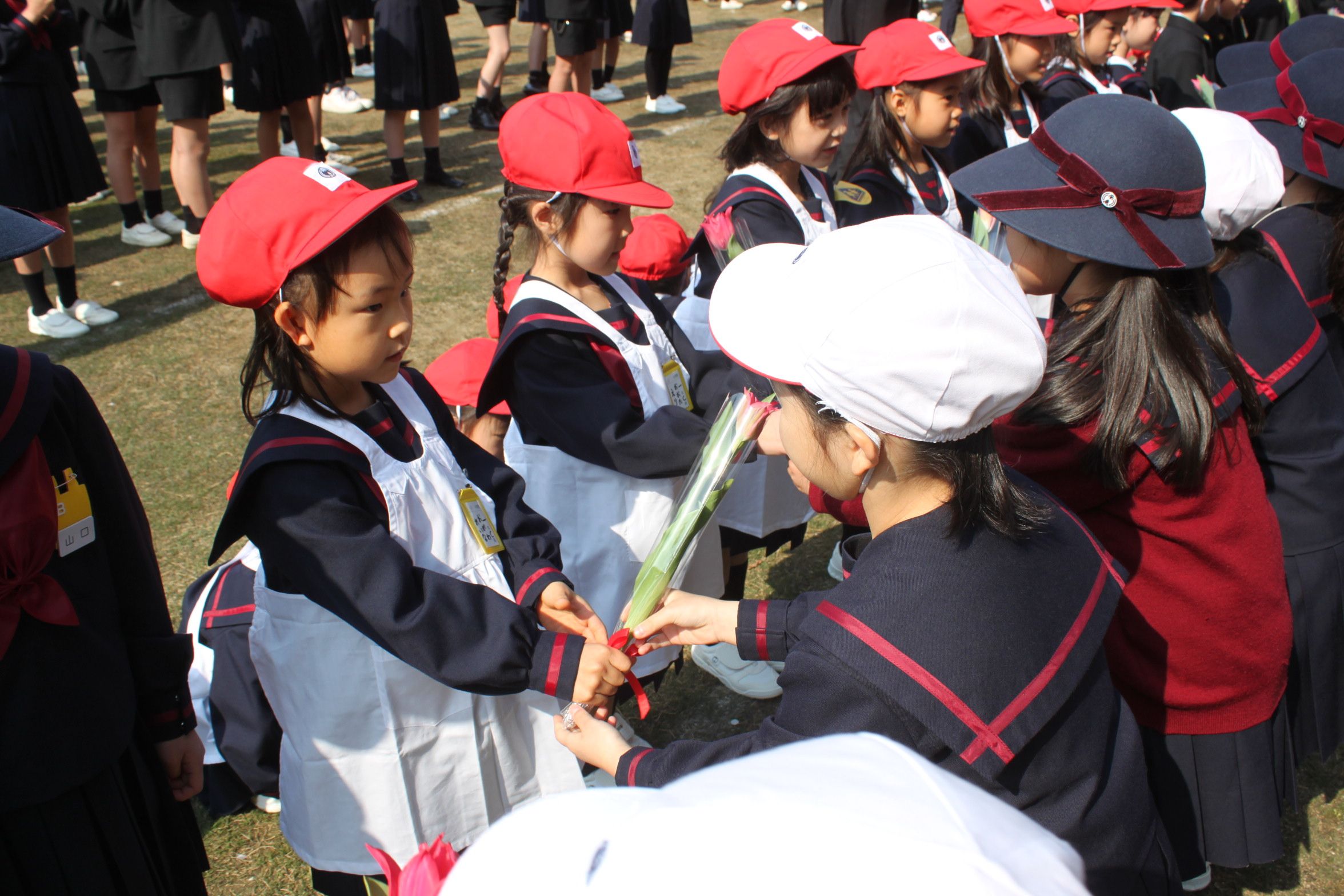 2014年04月10日(木) 始業式・対面式 今日は、全校生徒が新入生と初めて対面する対面式が行われました。2年生から1年生にチューリップのプレゼントがありました。1年生はうれしそうにしていました。6年生は、1年生のお世話を頑張ってくれました。