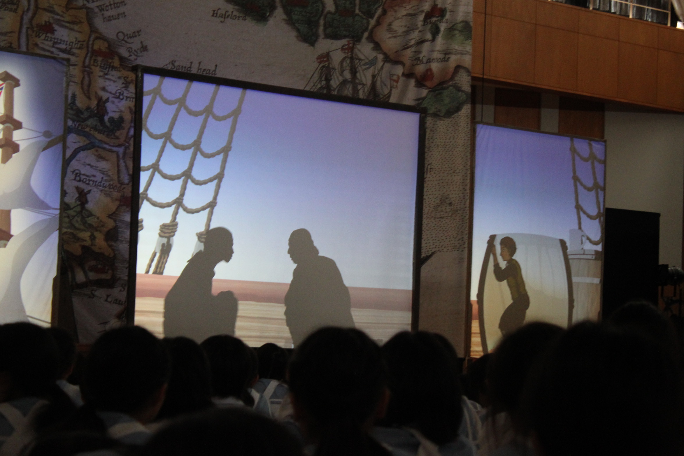 今年は、劇団かかし座の方々にお越しいただき、影絵劇を鑑賞しました。