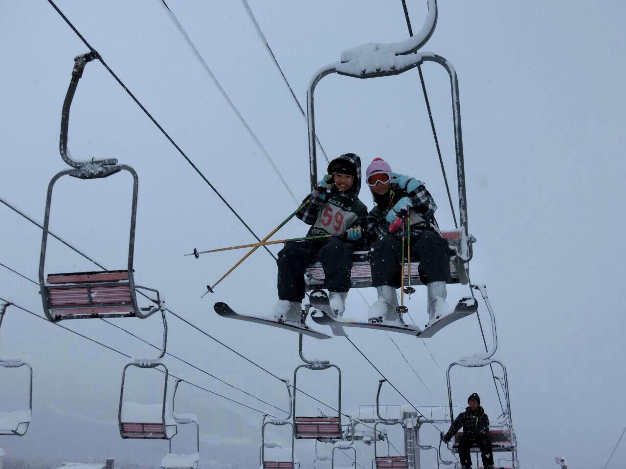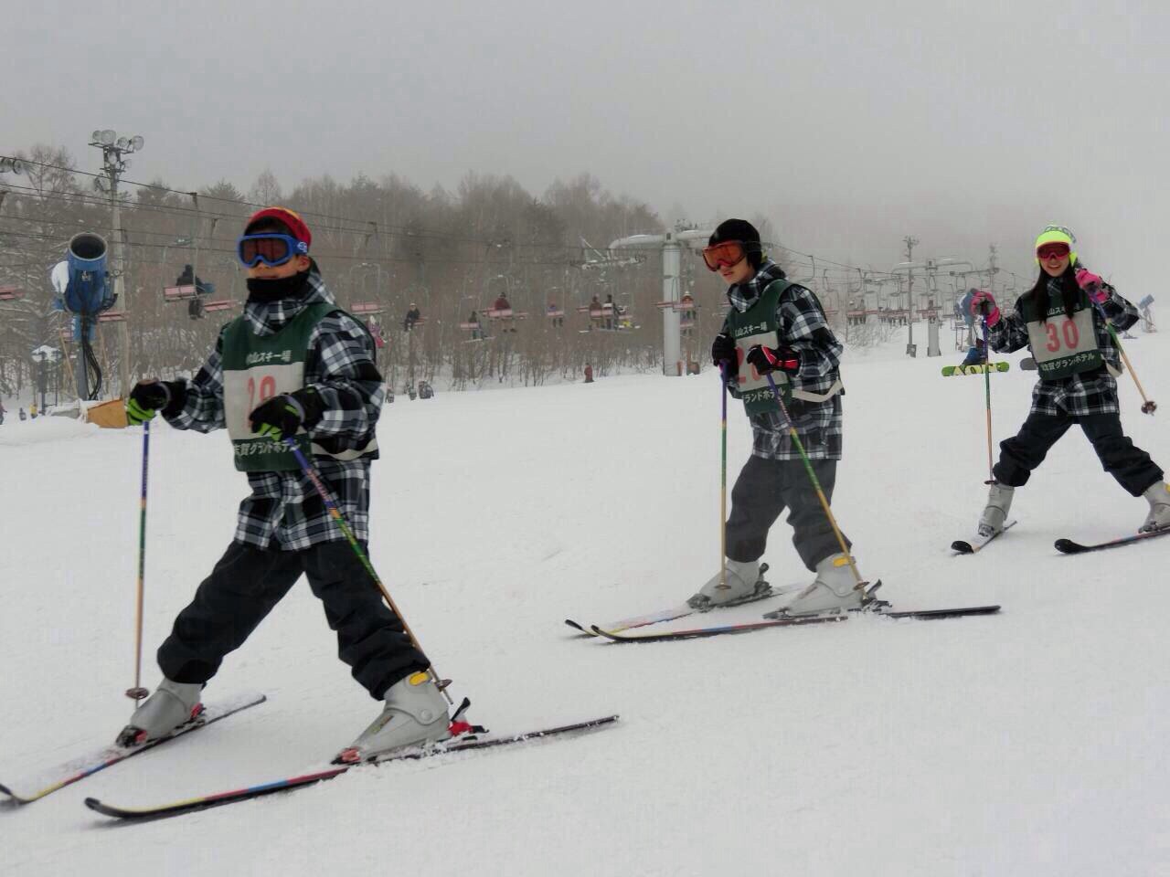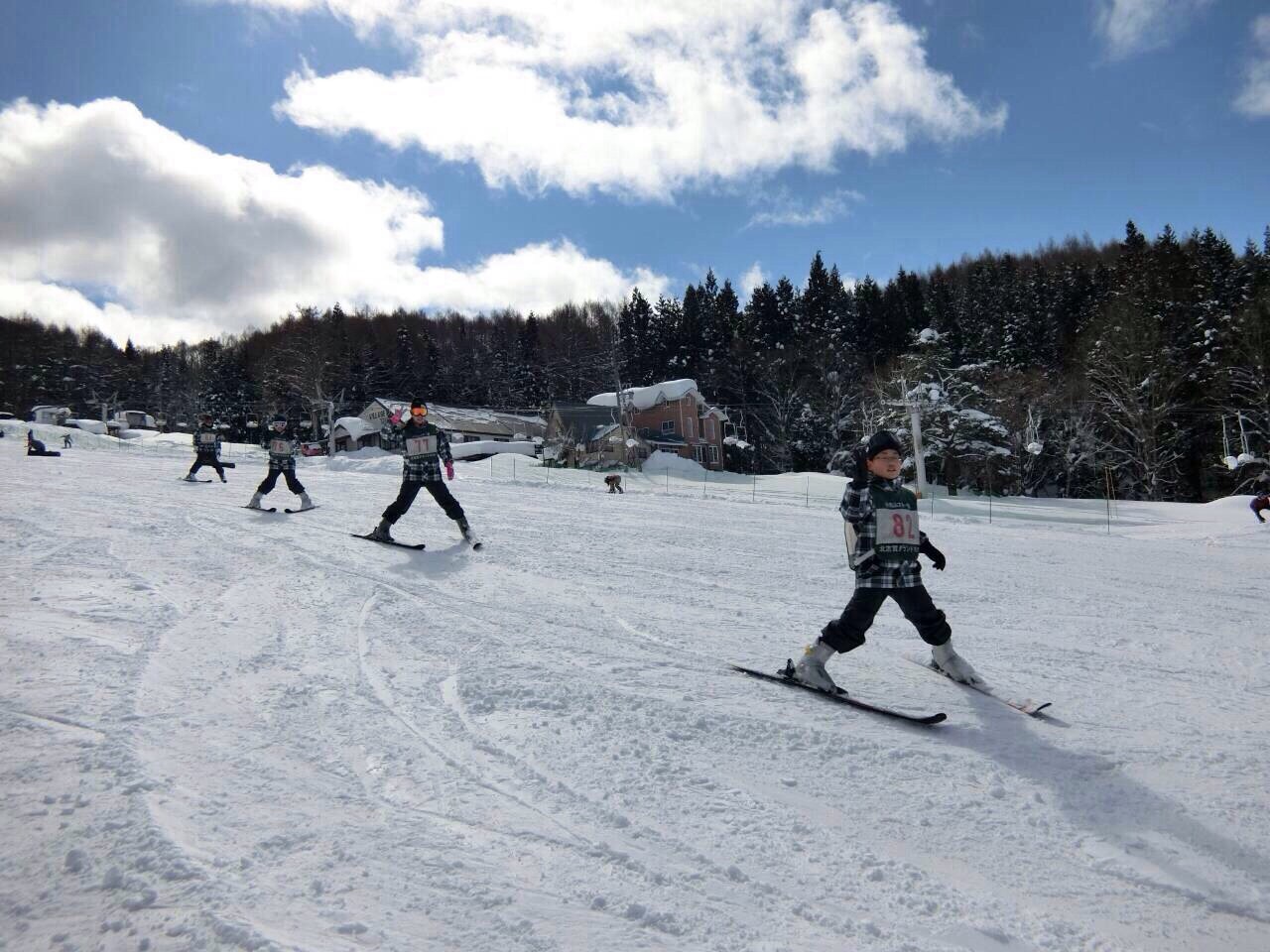 今日のお天気は曇っていますが、児童たちは一生懸命スキーを練習しました。