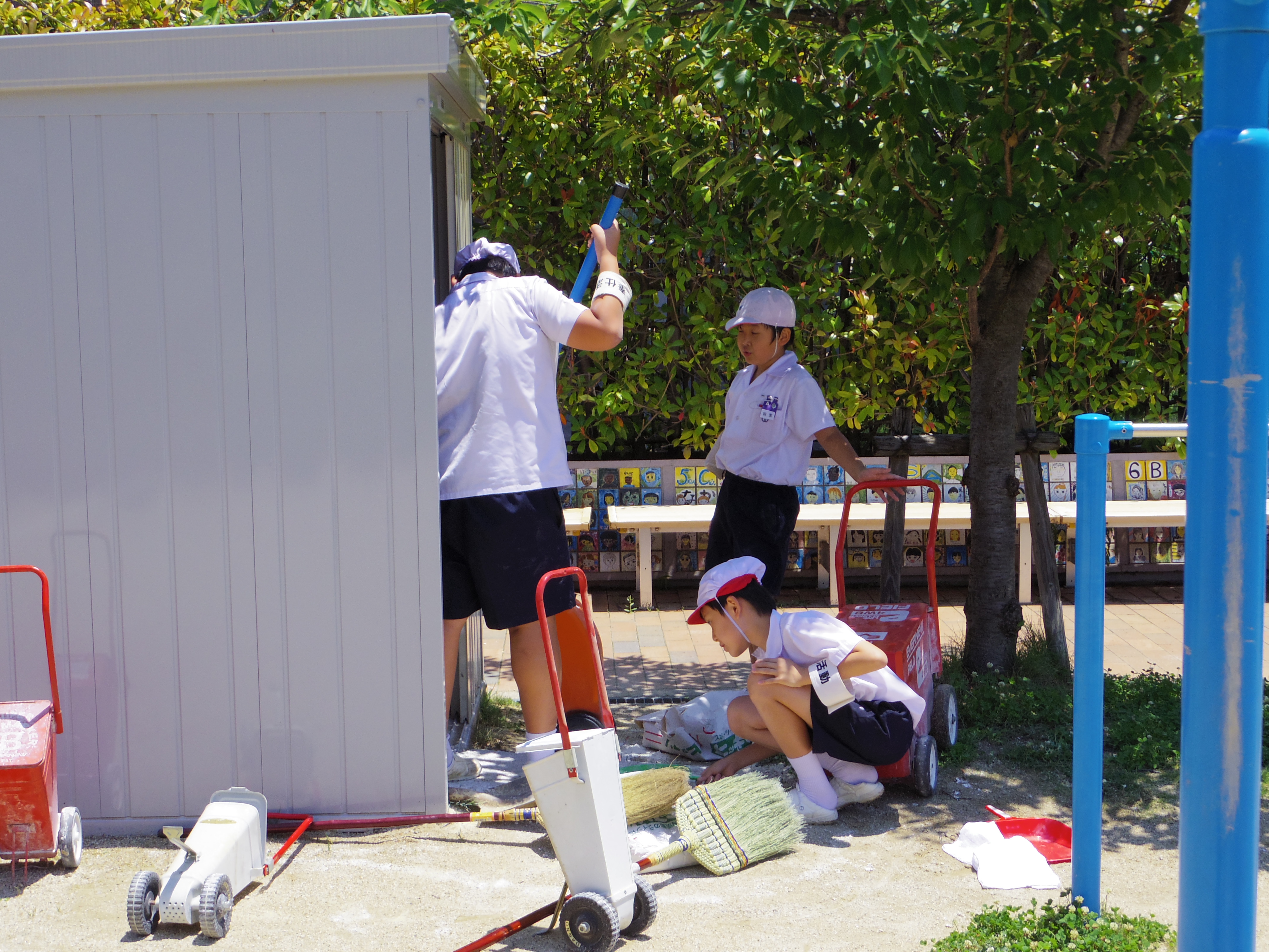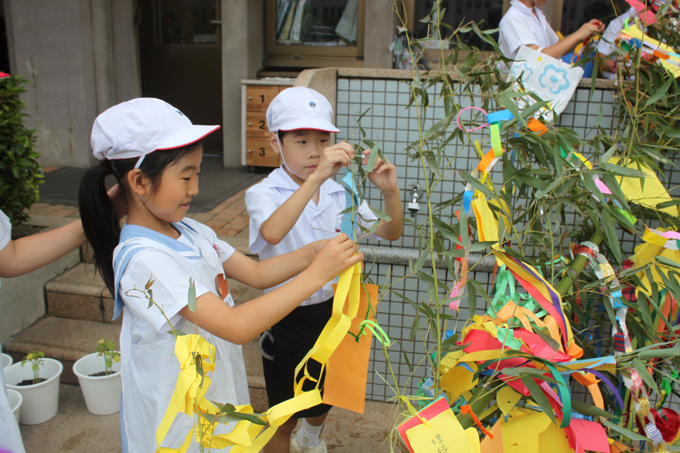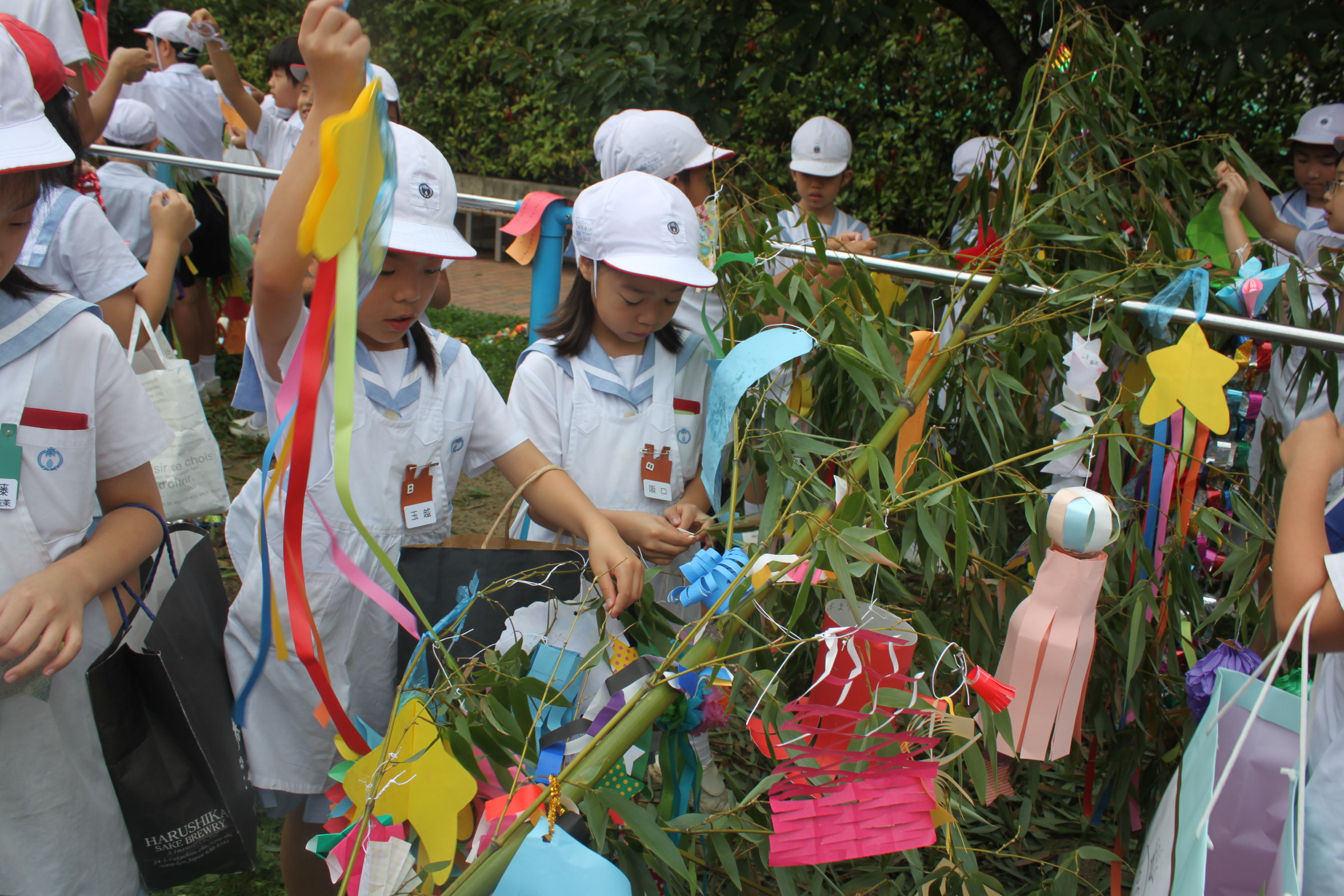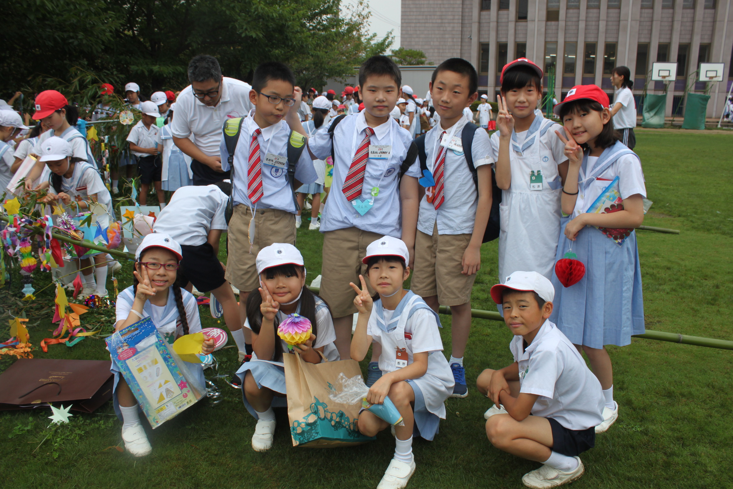 その後、七夕笹飾りを一緒に行い、交流をはかり、音楽・図工の授業に参加。給食も一緒にいただきました。