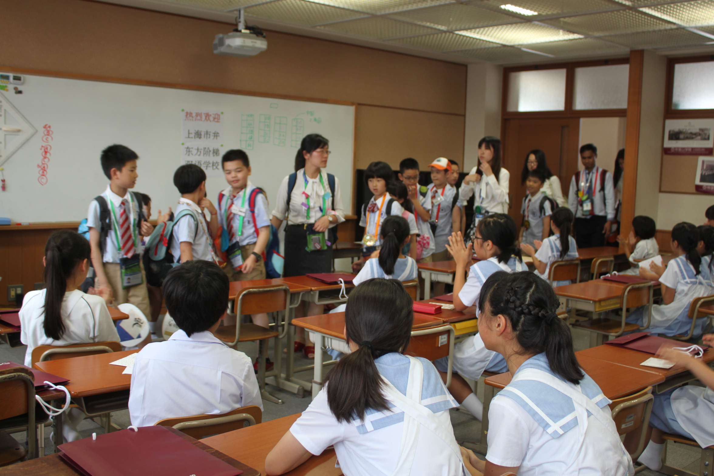 歓迎セレモニーでは、谷校長先生から紹介があり、次に児童代表が英語で、上海の児童代表が日本語で心のこもったあたたかい挨拶をしてくれました。