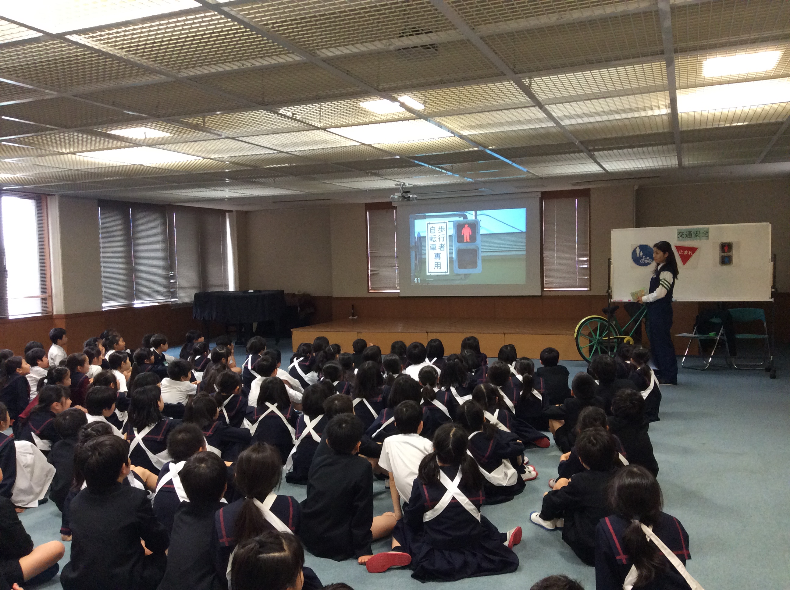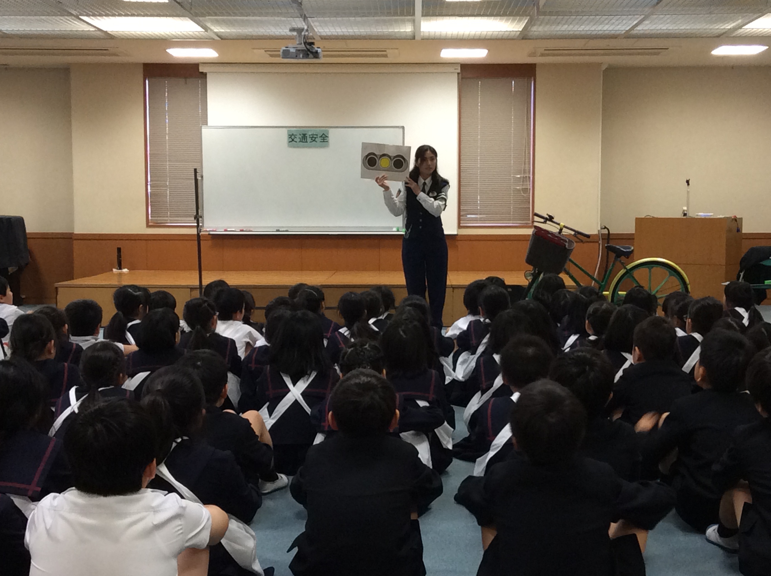 今日は警察官の方から、交通安全についての講習をしていただきました。