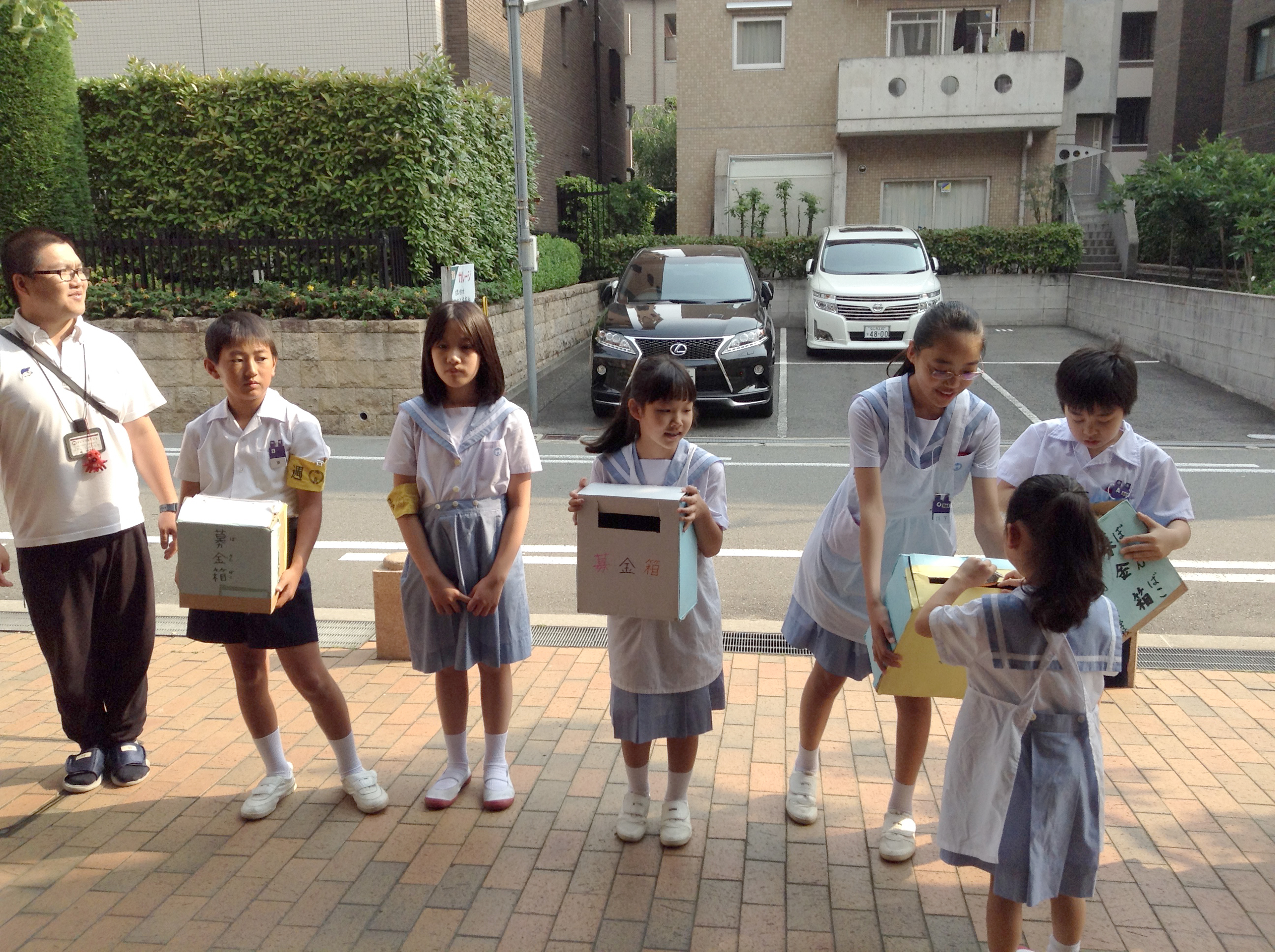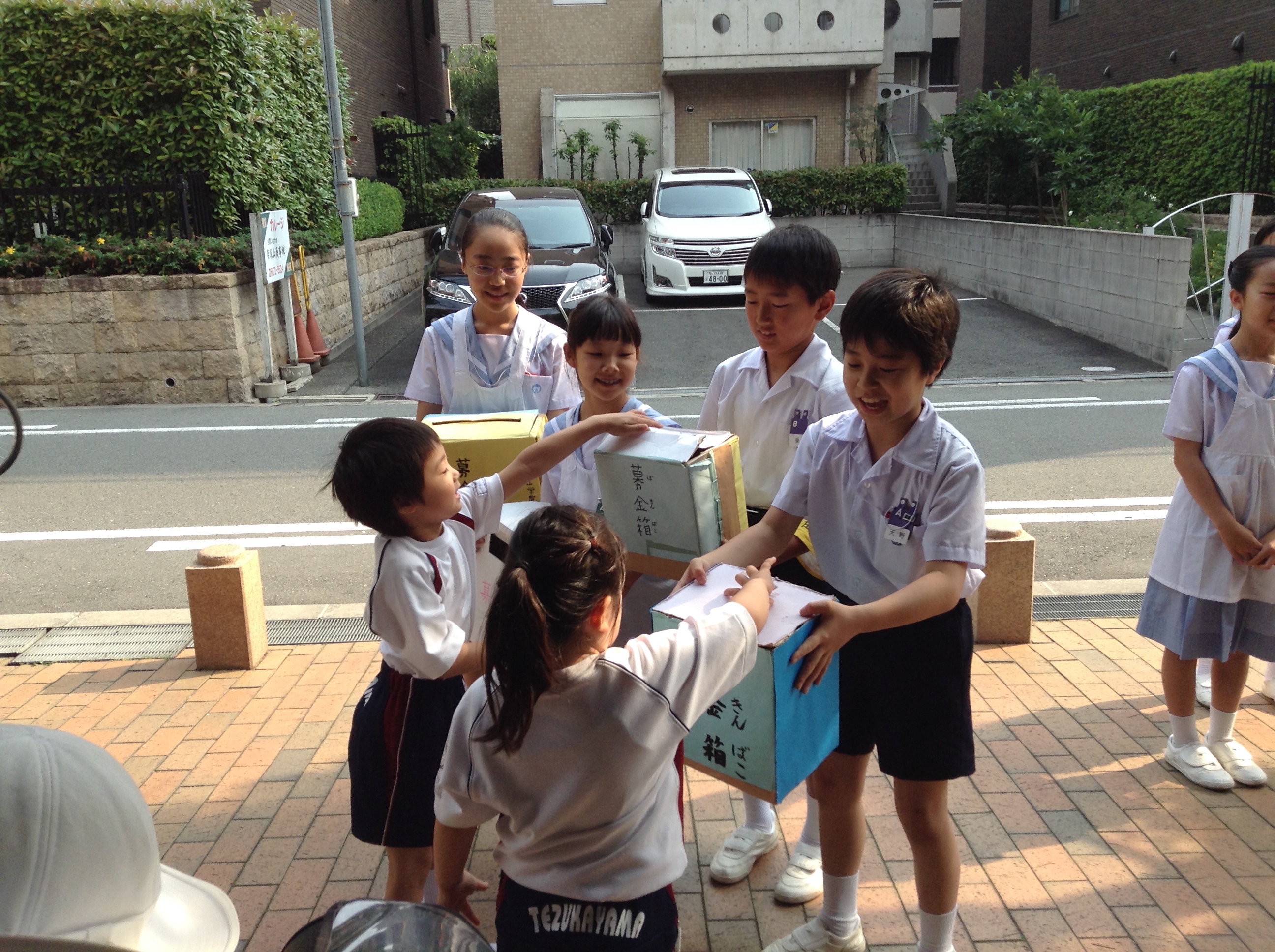 初日の今日は、多くの児童たちが、募金箱に募金袋を入れてくれました。