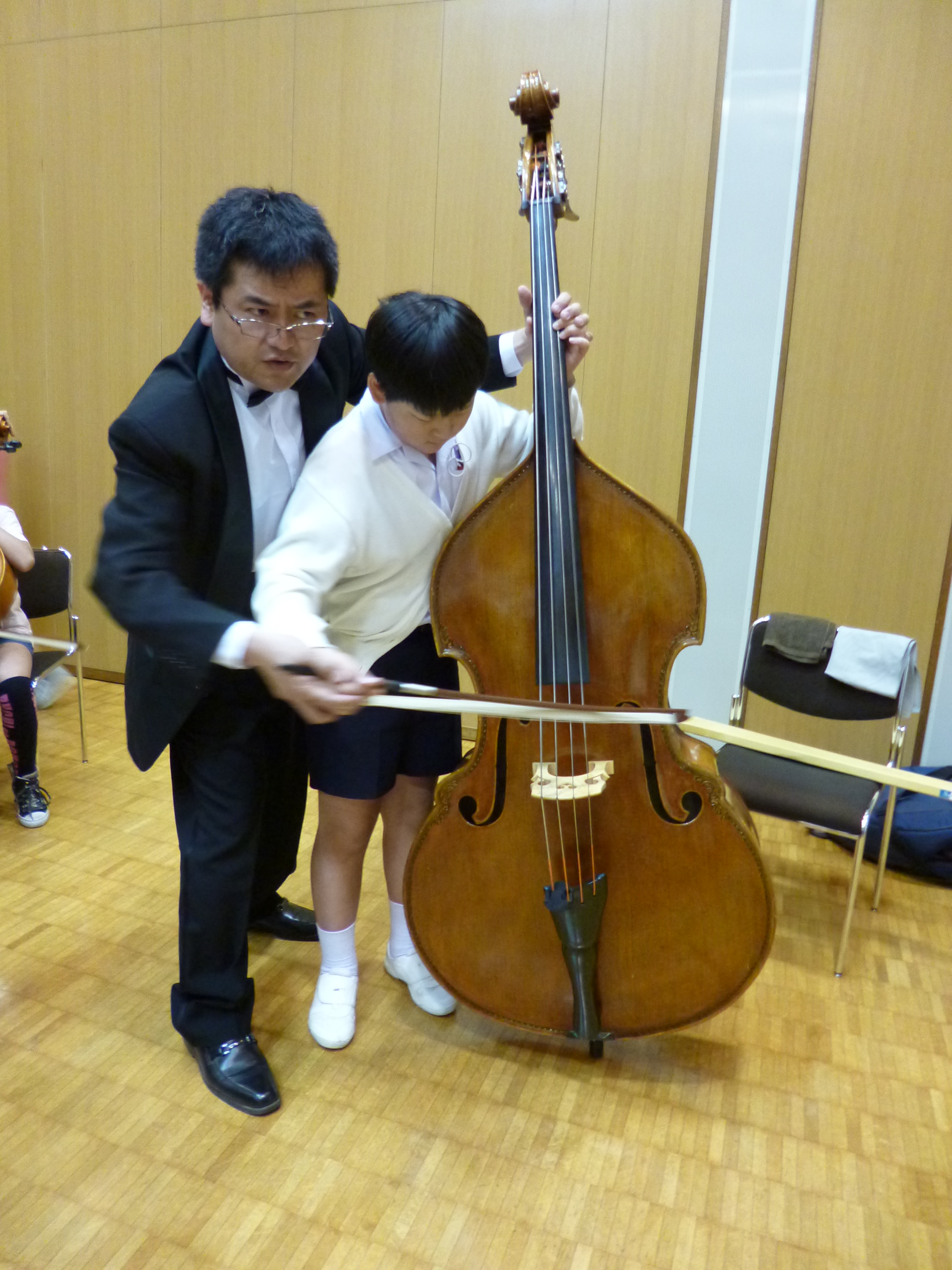 楽器の紹介では、初めて見るコントラバスの大きさや、変わった形のファゴット、ミュートを付けたトランペットのおもしろい音にくぎづけでした。
