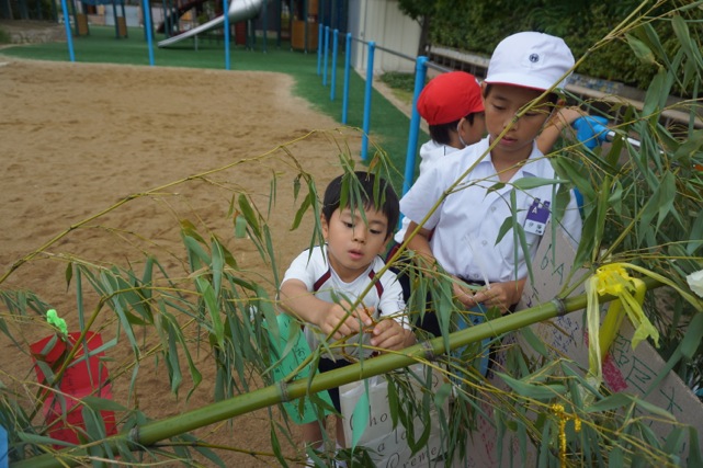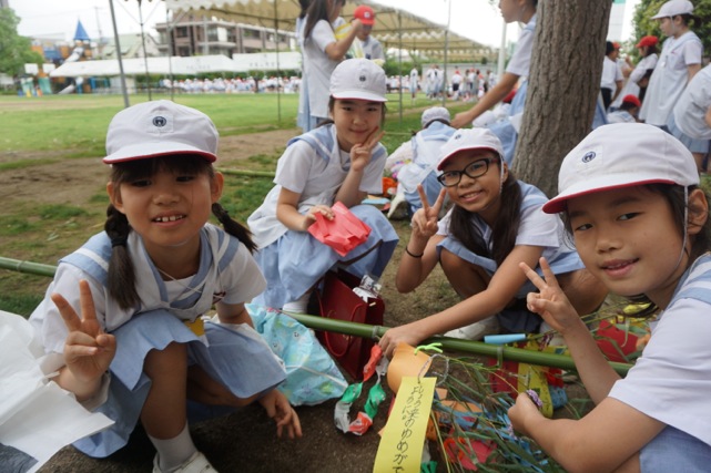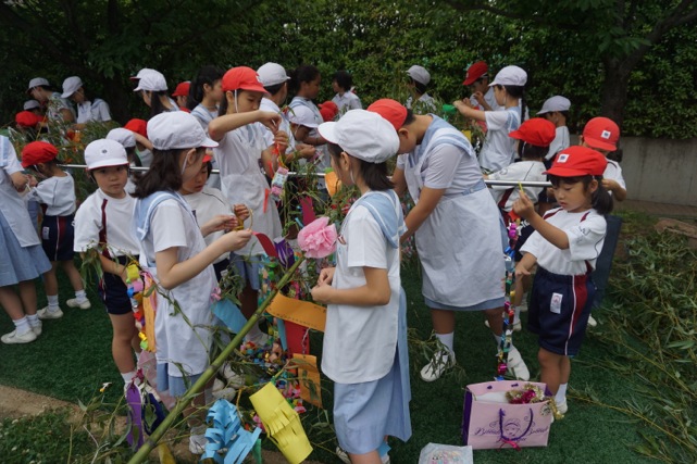 児童たちは、各姉妹学級に分かれ、飾りや願ことを書いた短冊をたくさんつけました。