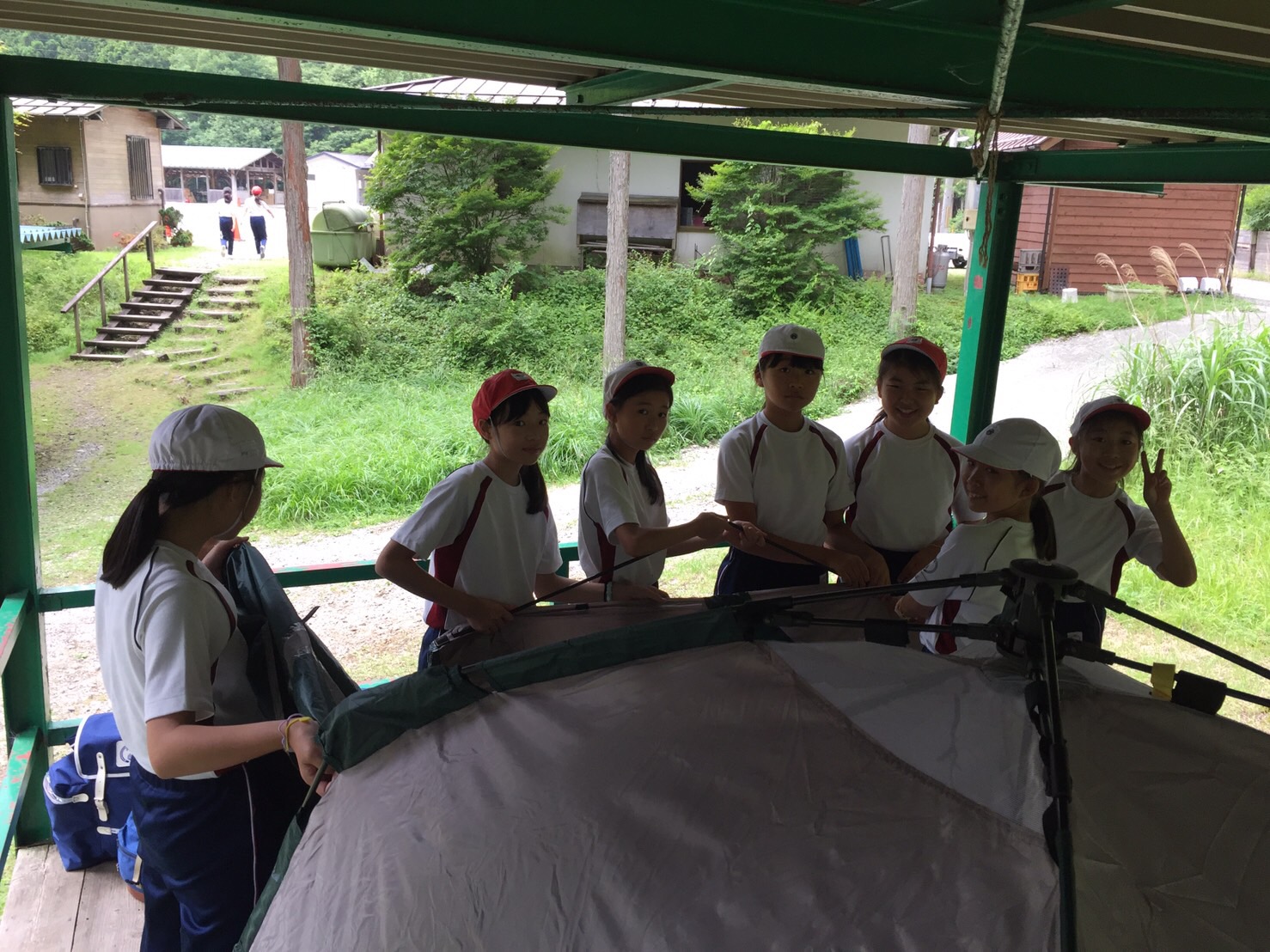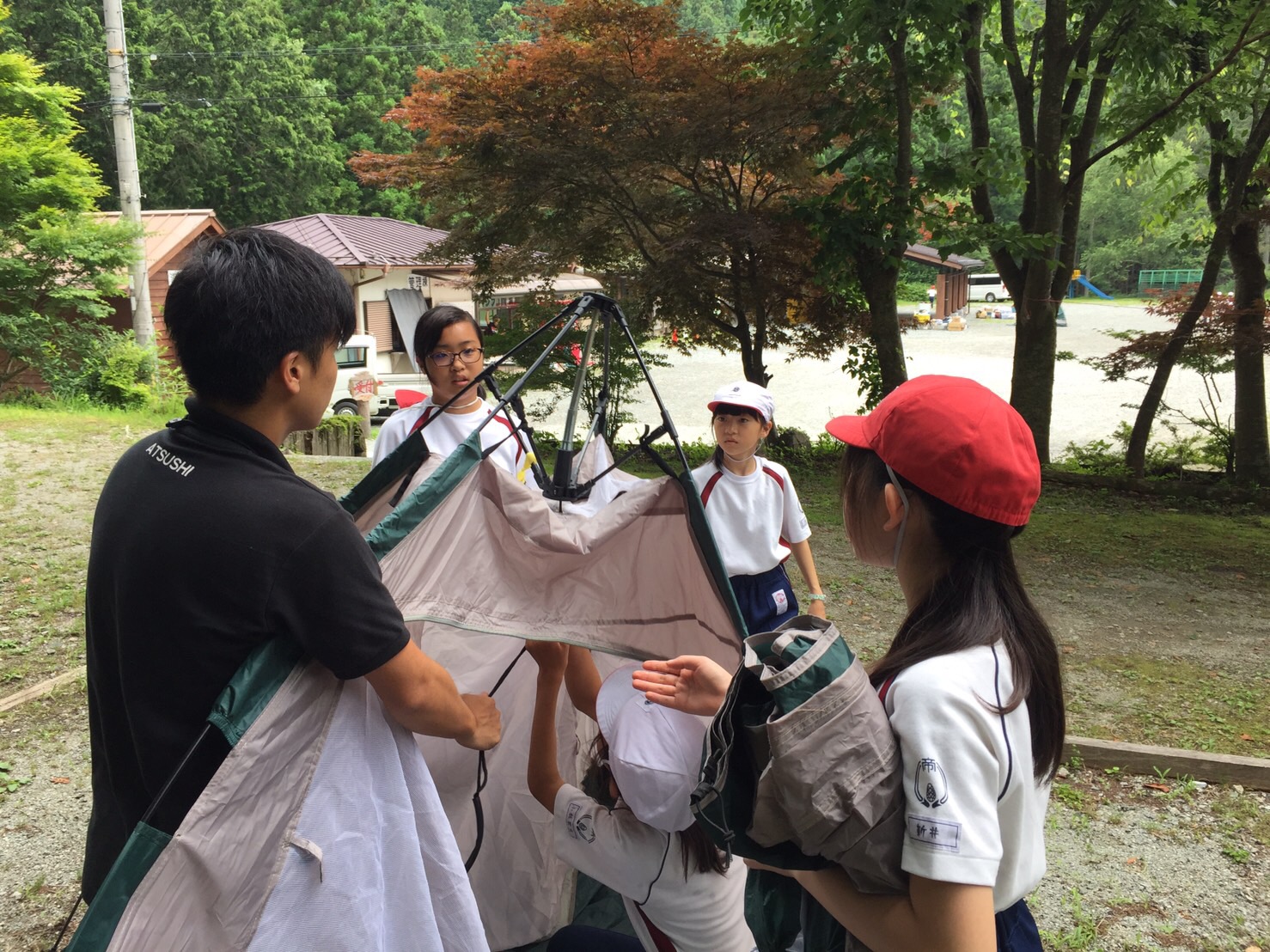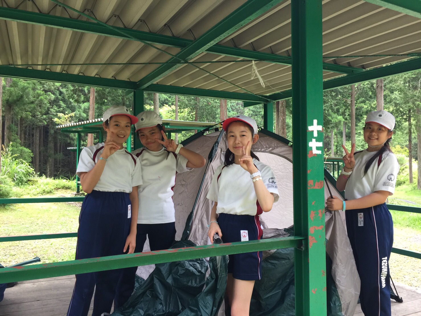 本日より、5.6年生はキャンプに出発しました。 無事に洞川キャンプ場に着き、 青空ときれいな緑の中でお昼ご飯を美味しく頂きました。 開所式が行われ、2泊3日の自然の中での生活を楽しみます。 6年生と5年生の半分は、自分達の力でテントを張り、半分の5年生はバンガローに宿泊します。