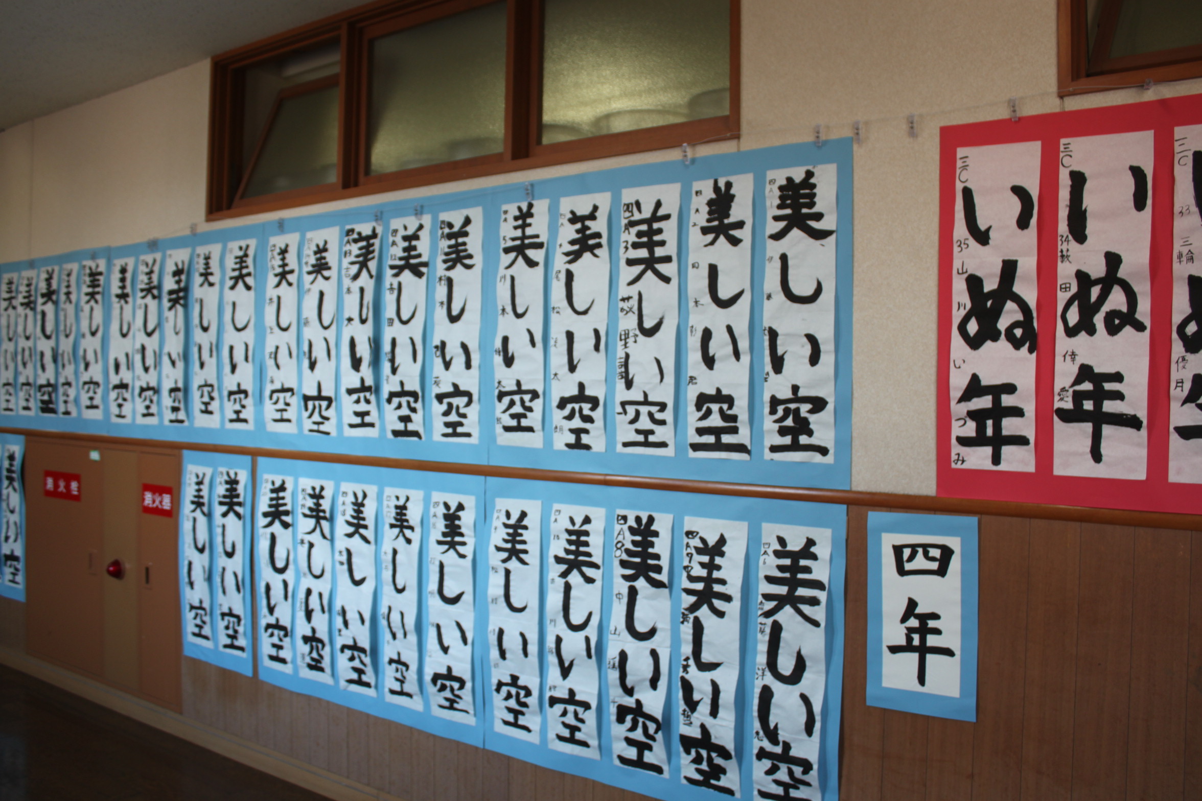 児童たちが書道の時間に丁寧に書いた作品が、展示されています。