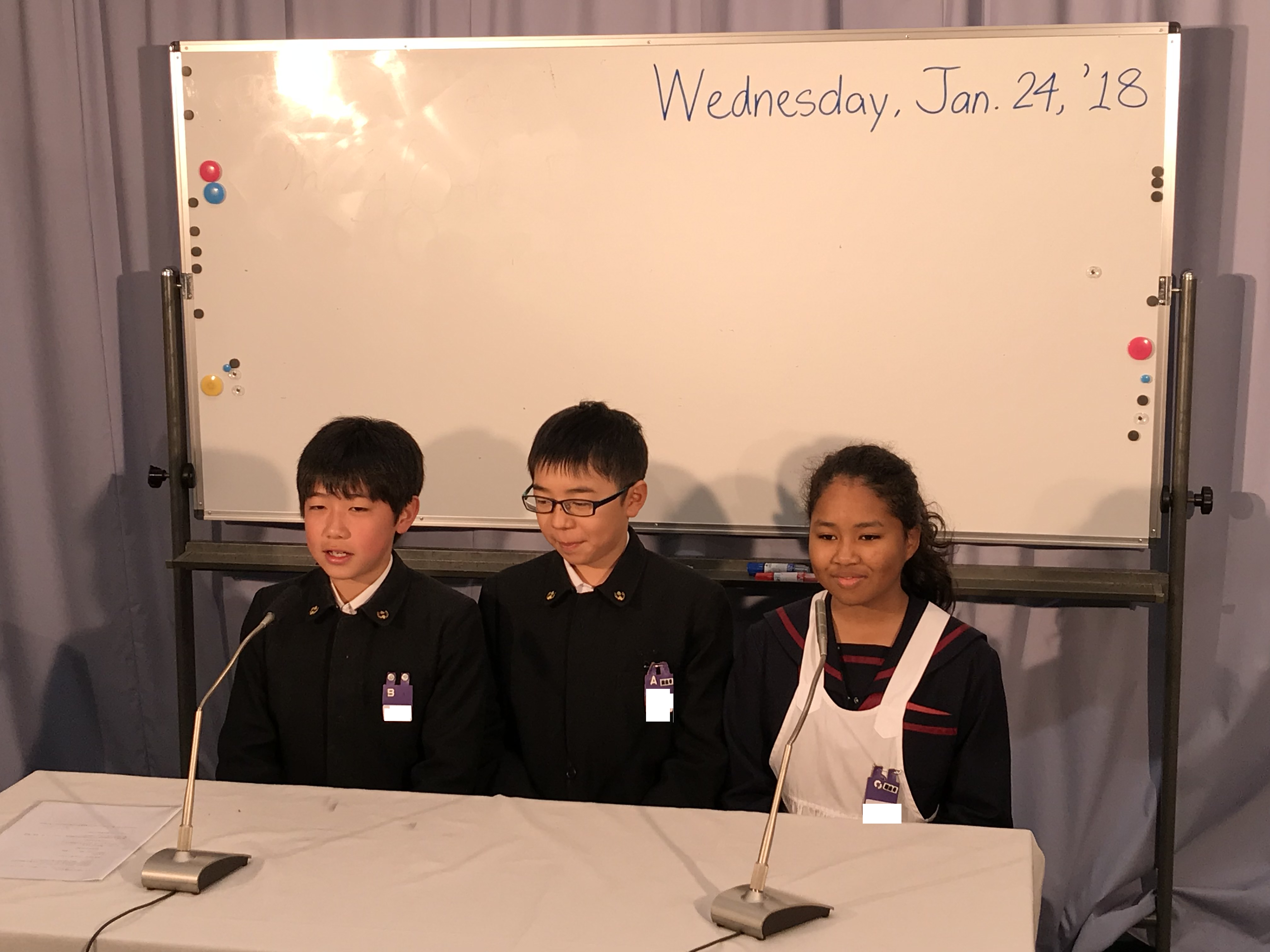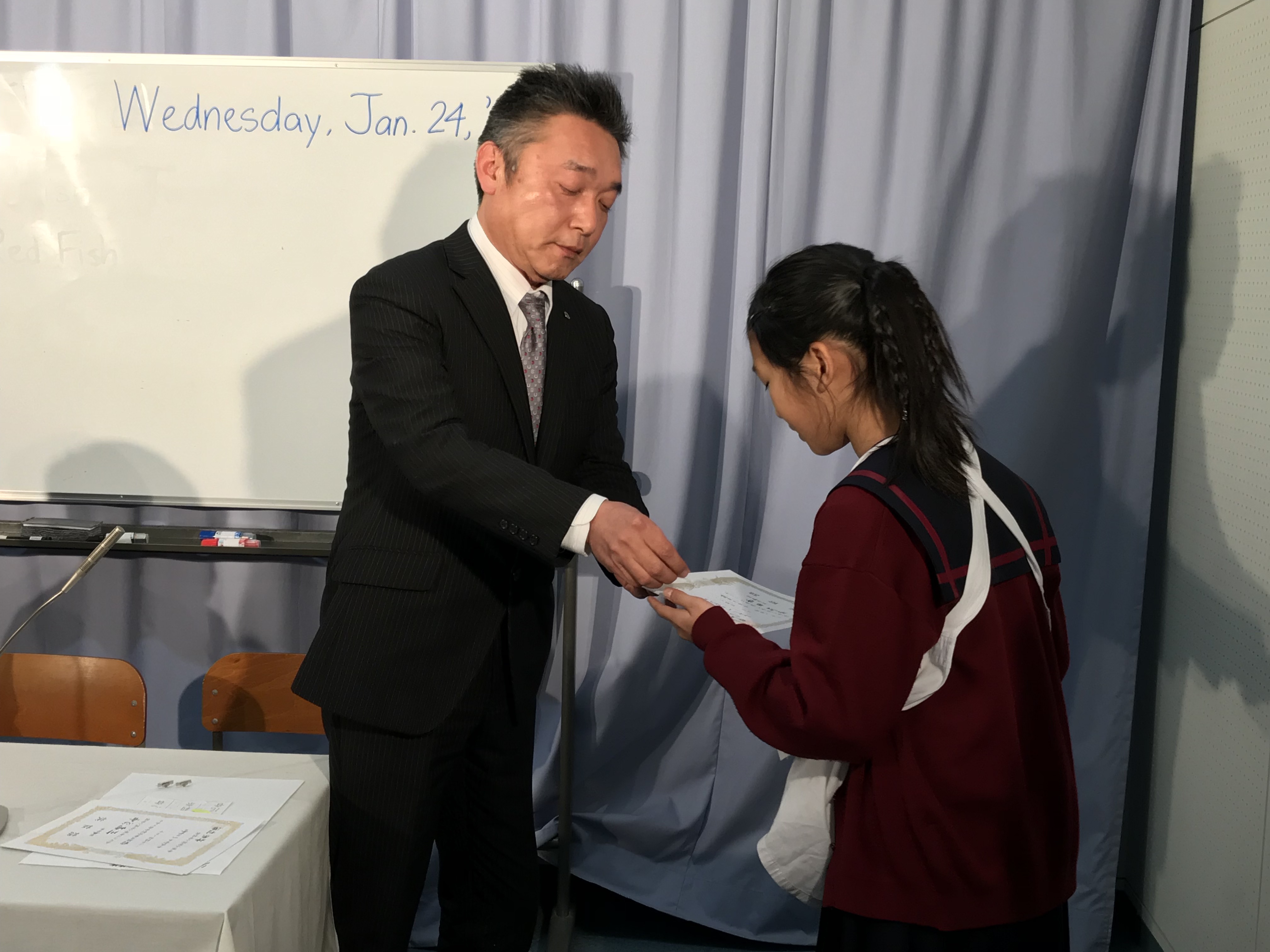 昨日、テレビ朝礼にて児童会役員選挙の認証式が行われ、新しい児童会役員3名に認証状が渡されました。