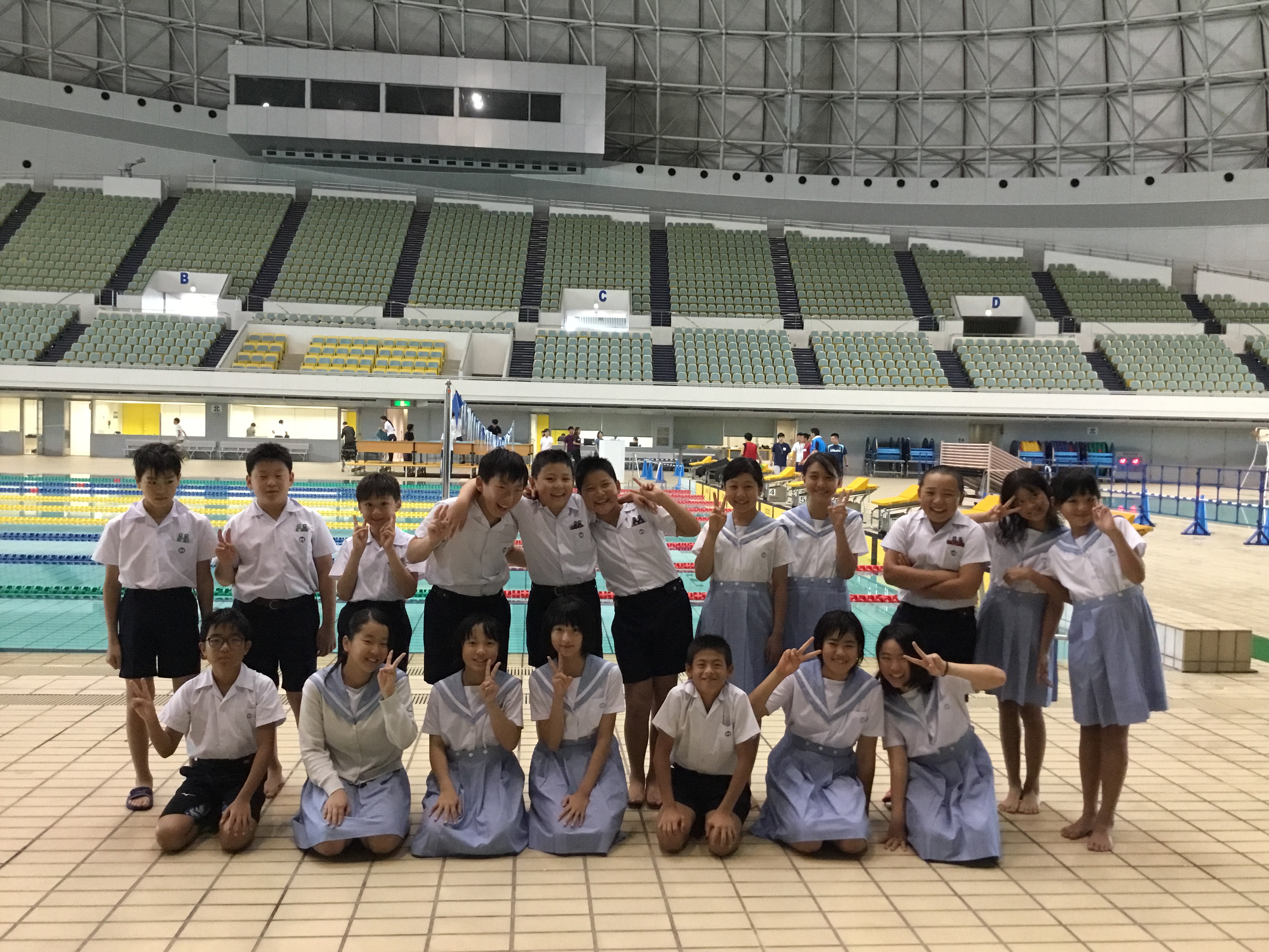 西日本私小連水泳記録会に、4年生から6年生の17名が参加しました。夏休みにたくさん練習を積み重ねてきた子どもたちは、その成果を発揮する泳ぎぶりでした。持てる力の全てを出し切り、みんなで友達の応援をしたり、子どもたちの生き生きとした様子が見られました。保護者の皆様もたくさん来ていただき、ありがとうございました。