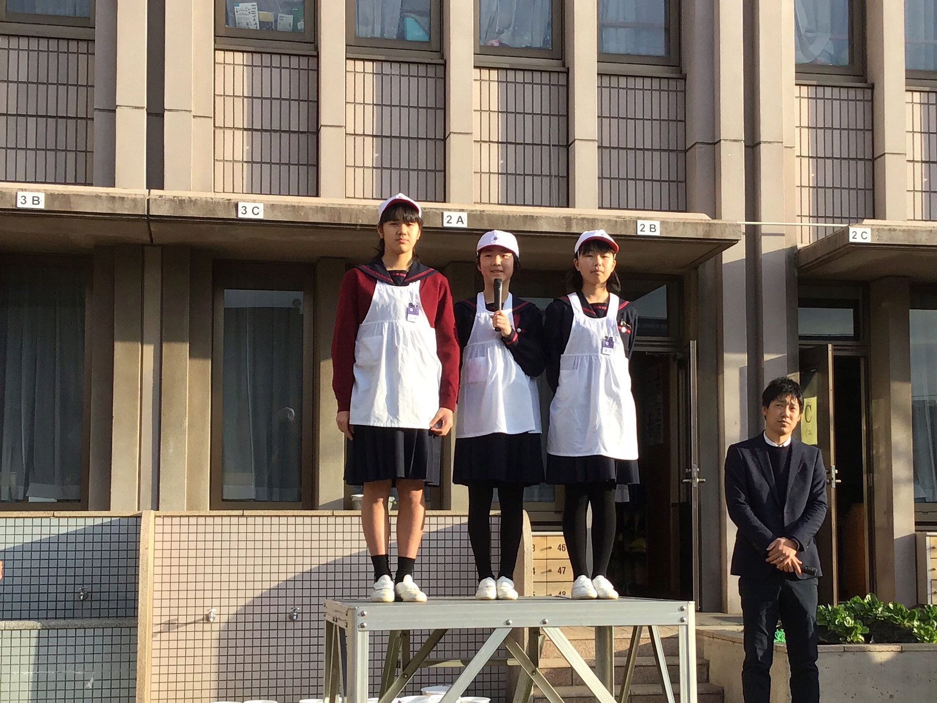 またその他にも、生徒指導の先生からのお話や、奉仕活動について、また給食委員からのゲームの提案など盛りだくさんな朝礼となりました。