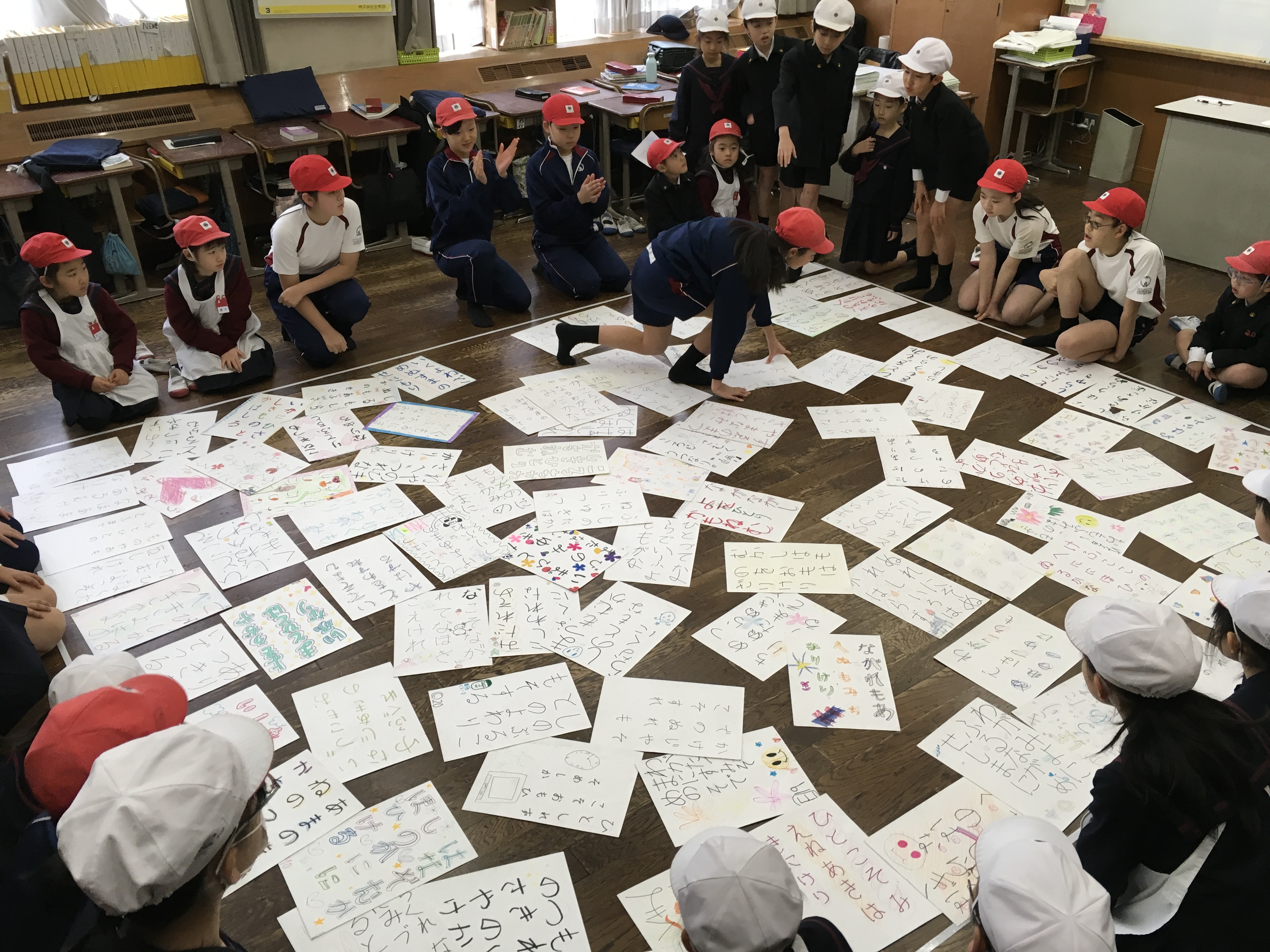 本日、1限目に百人一首大会が行われました。 兄弟学級でチームを作り、他のチームと3回対戦します。 児童たちは、この日の為に練習してきました。 百人一首が詠み始められると、教室からは「ハイ!」と元気な札を取る声と拍手が聞こえてきました。 各教室で熱戦が繰り広げられていました。