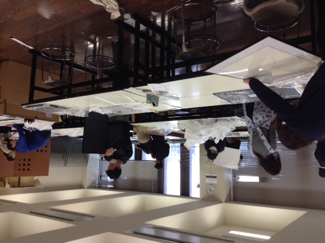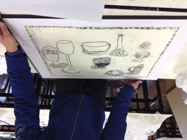 今日は、子どもたちの作品を額に入れる作業をしていました。