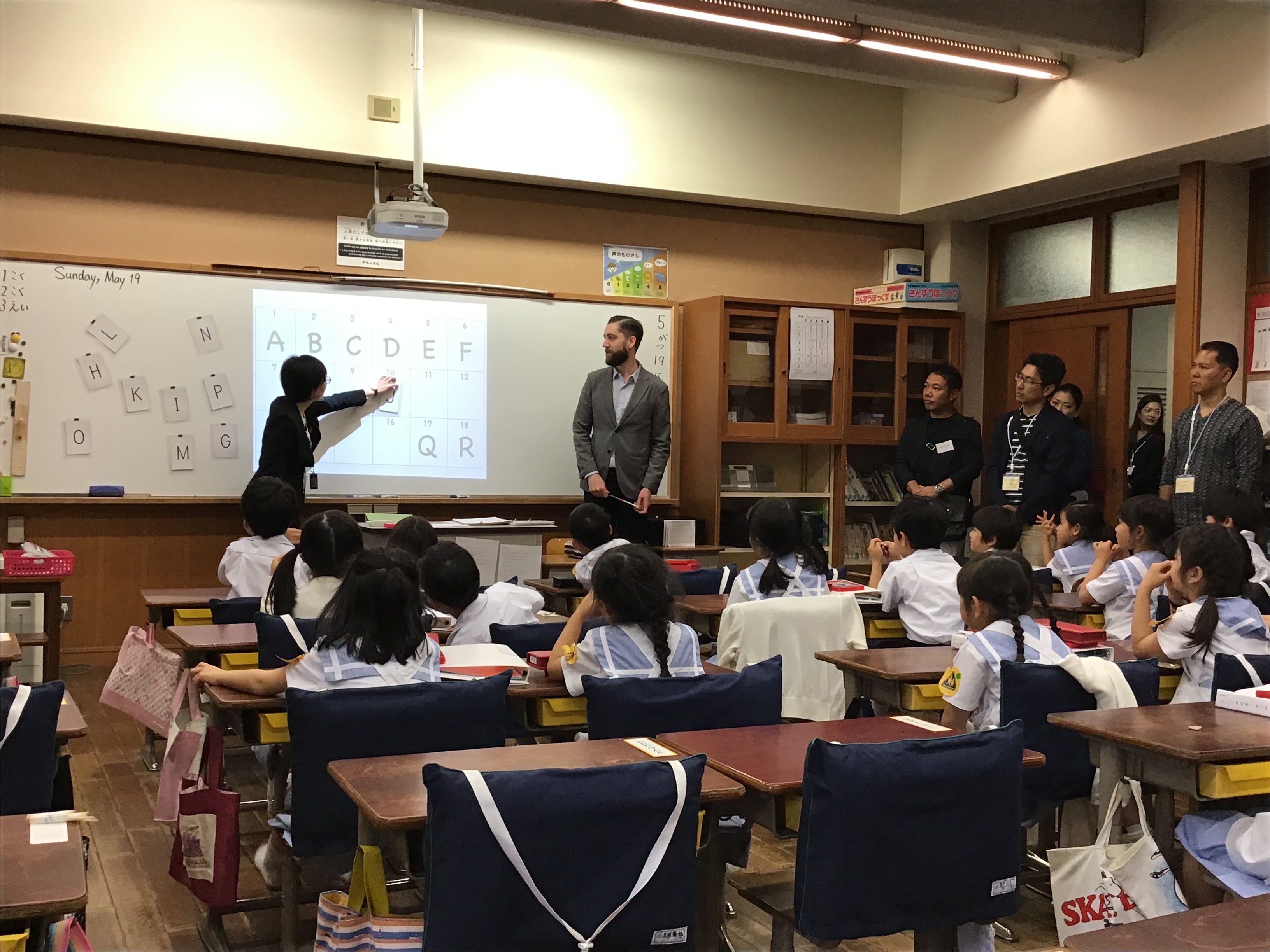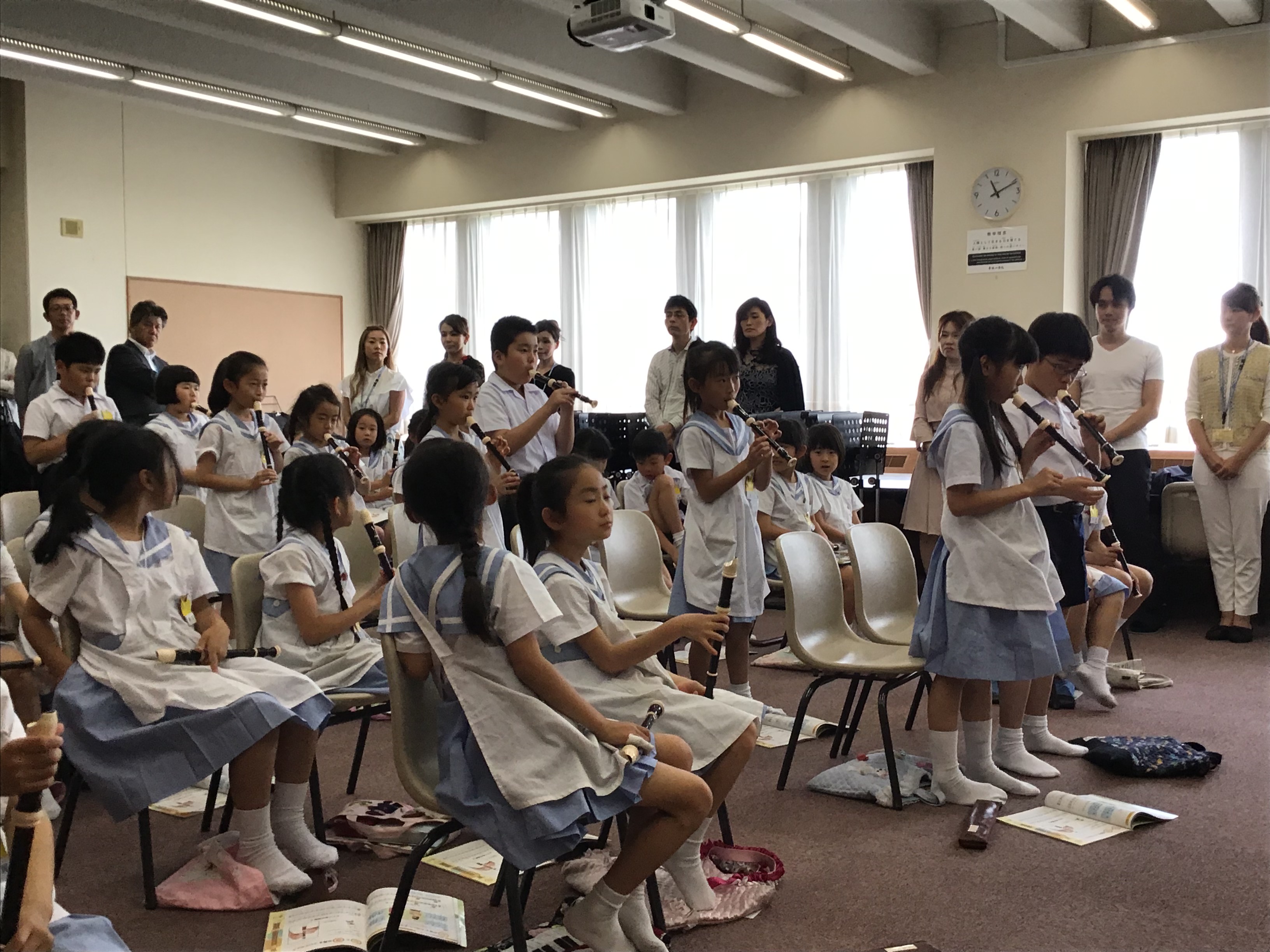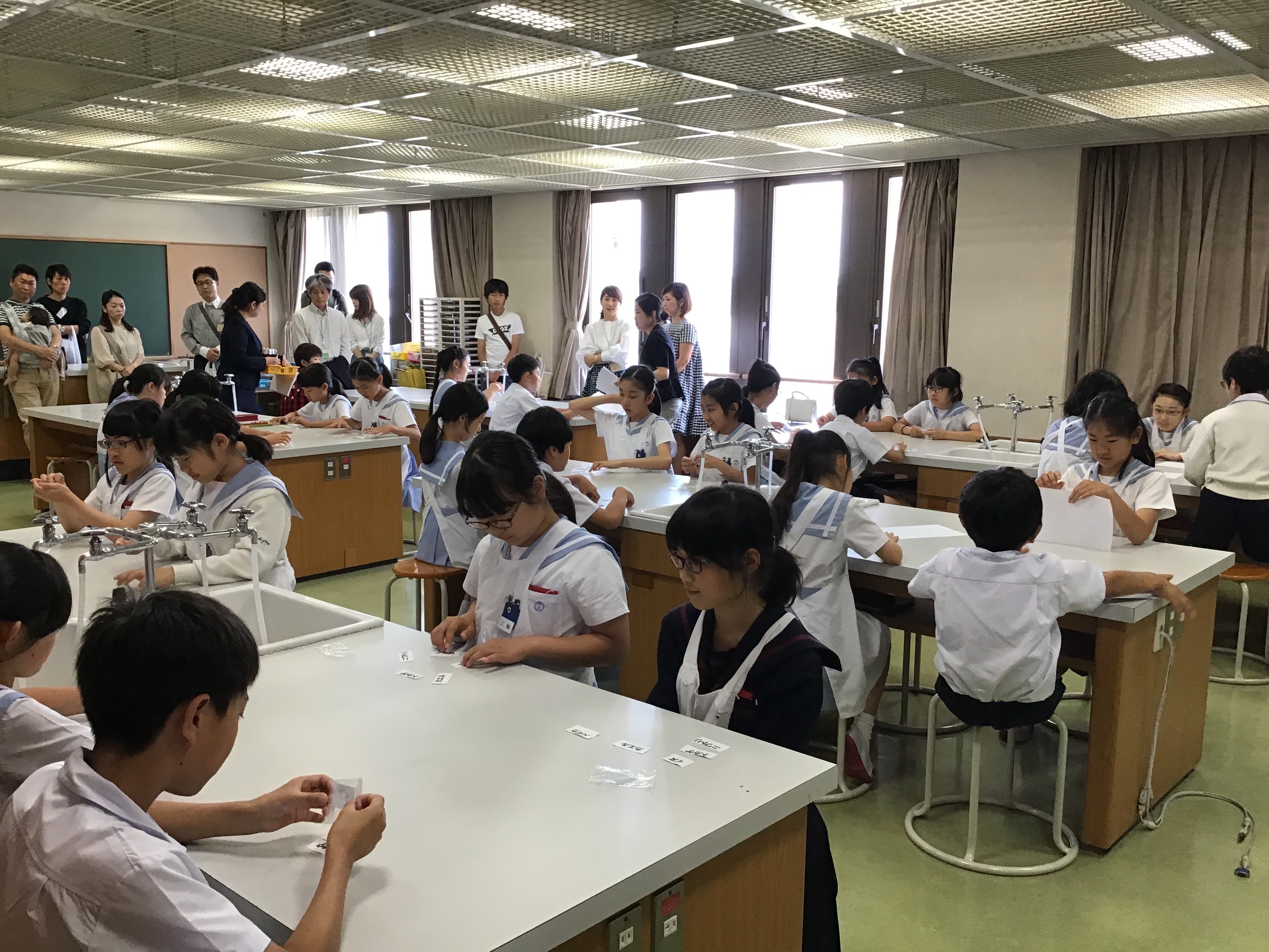各教室でたくさんの保護者の方々が見守る中、