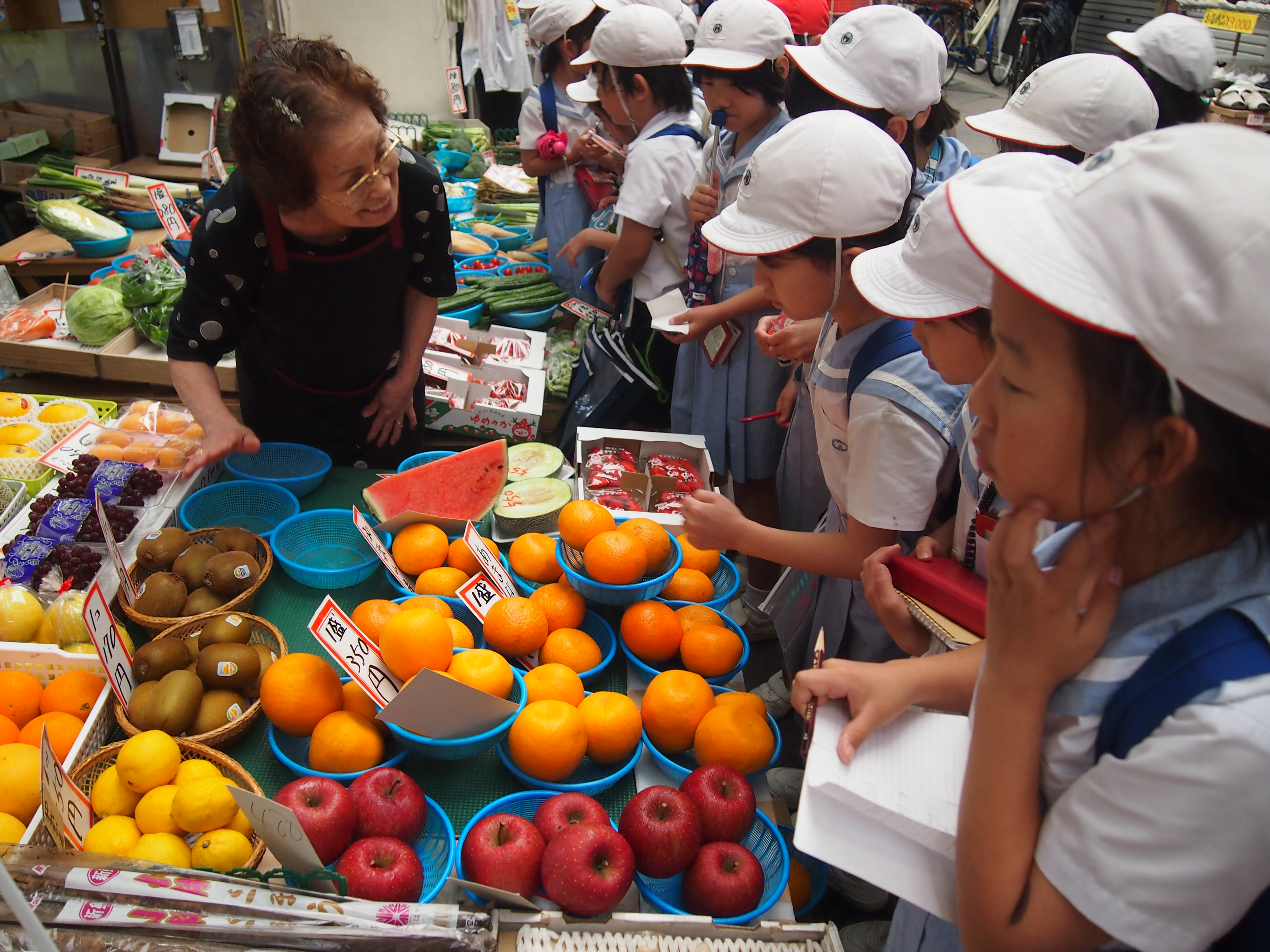 500円でお買い物をしながら、お店の方々にインタビューもしました。「お店で大変なこと」「お店の工夫」など、たくさん教えていただきました。