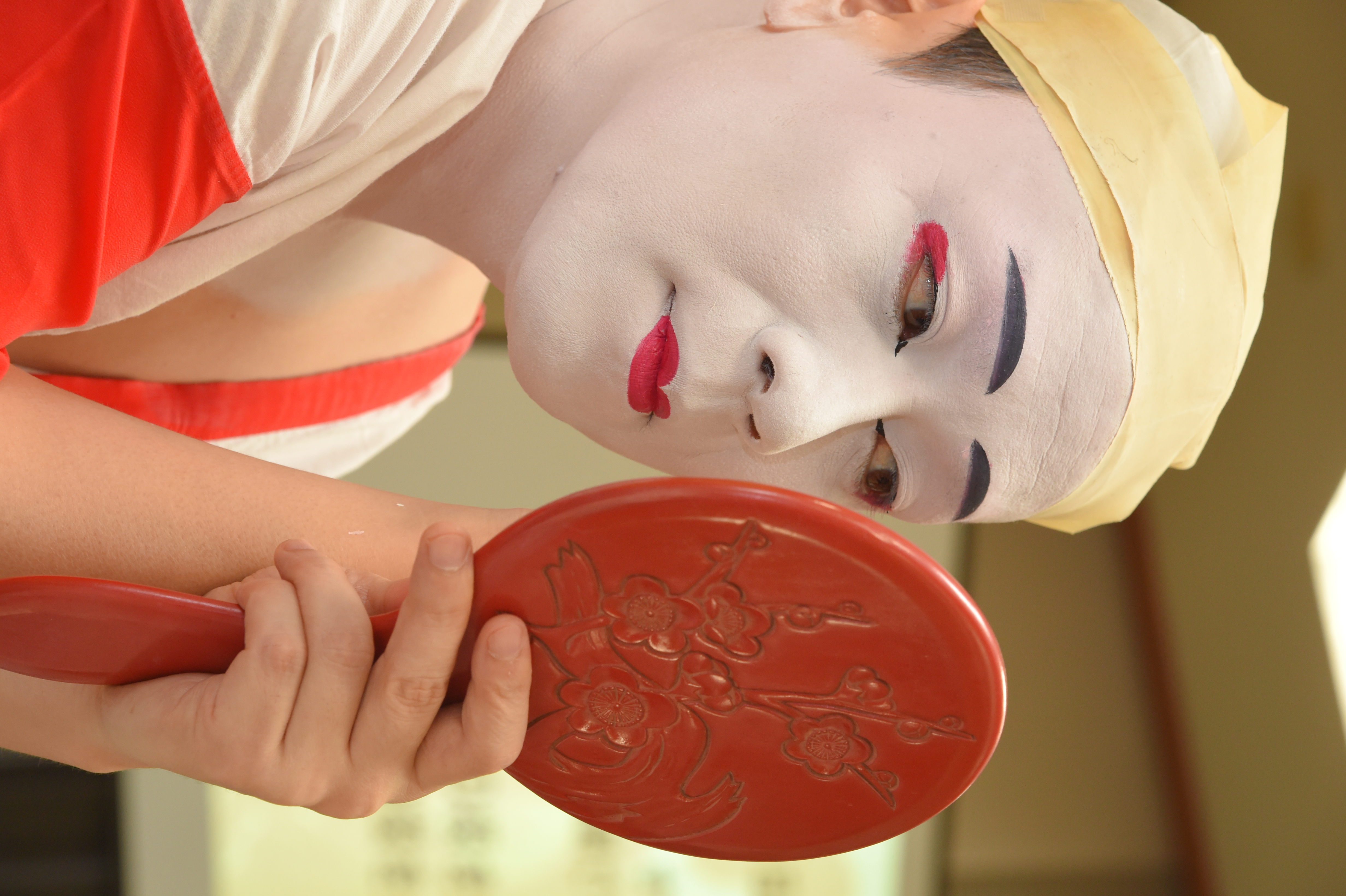 帝塚山学院小学校では、伝統文化理解のため様々な学習を行っています。5年生の図工では、歌舞伎の学習を行いました。初回は、歌舞伎役者さんを講師に迎え歌舞伎のお化粧について学習しました。児童たちは、男と女の演じわけに驚いていました。