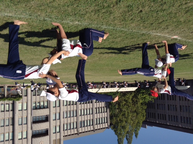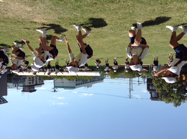 本日、運動場では、6年生が集団演技の練習をしていました。 太鼓と音楽に合わせて、演技の完成度を上げていました。