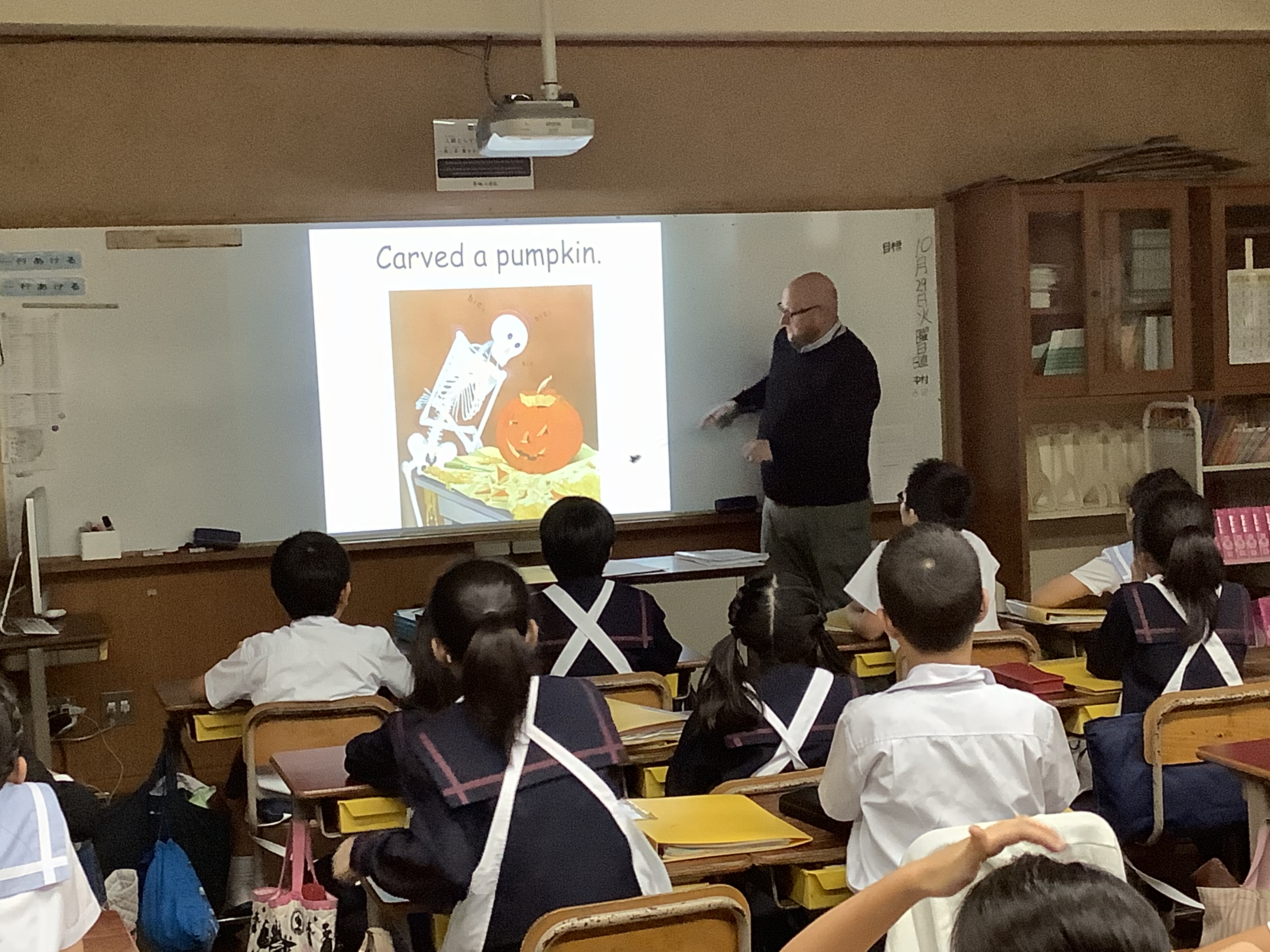 英語科の授業ではハロウィンまでの1週間、ハロウィンにまつわる言葉を学んだり、歌を歌ったり、英語で本を読みました。また高学年ではハロウィンの本来の意味などについても学びました。