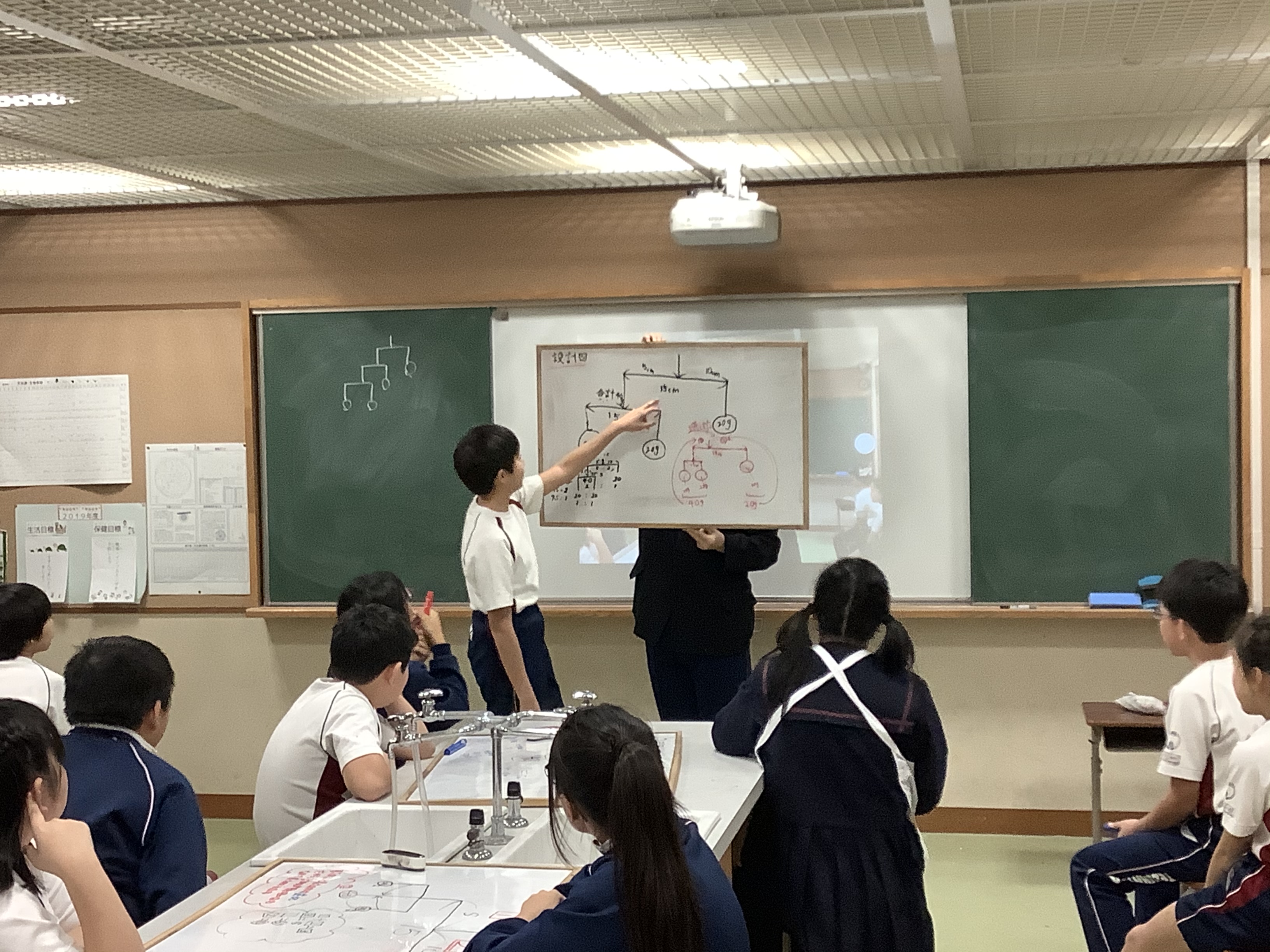 6年生の理科では、今までの学習をいかしてモビールの設計図をグループで考えました。その設計図をもとにモビールを作りました。実際にモビールを作ったことで、今までの学習の確認が1つできたと思います。
