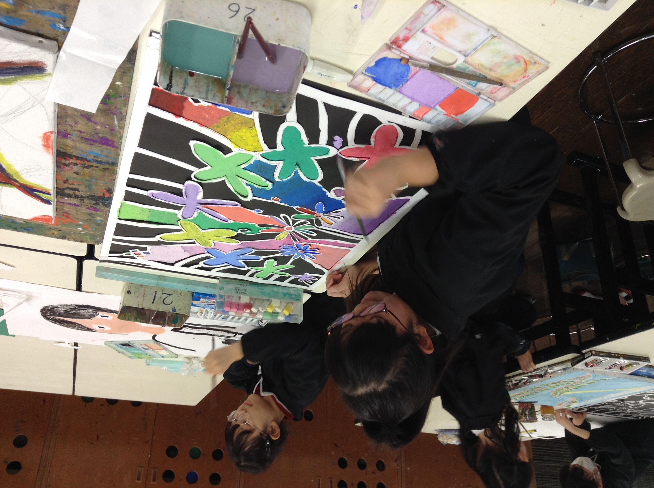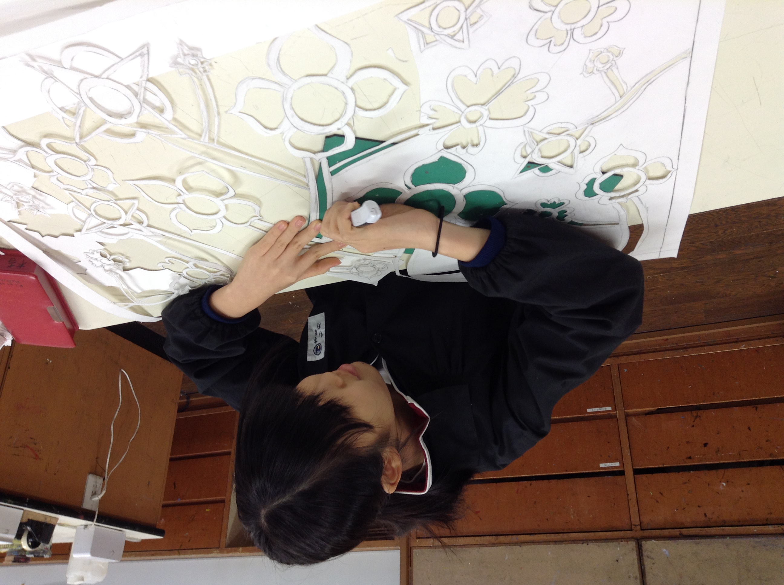 6年生が図工の授業で取り組んでいる、ステンシル(幻の花)を紹介します。