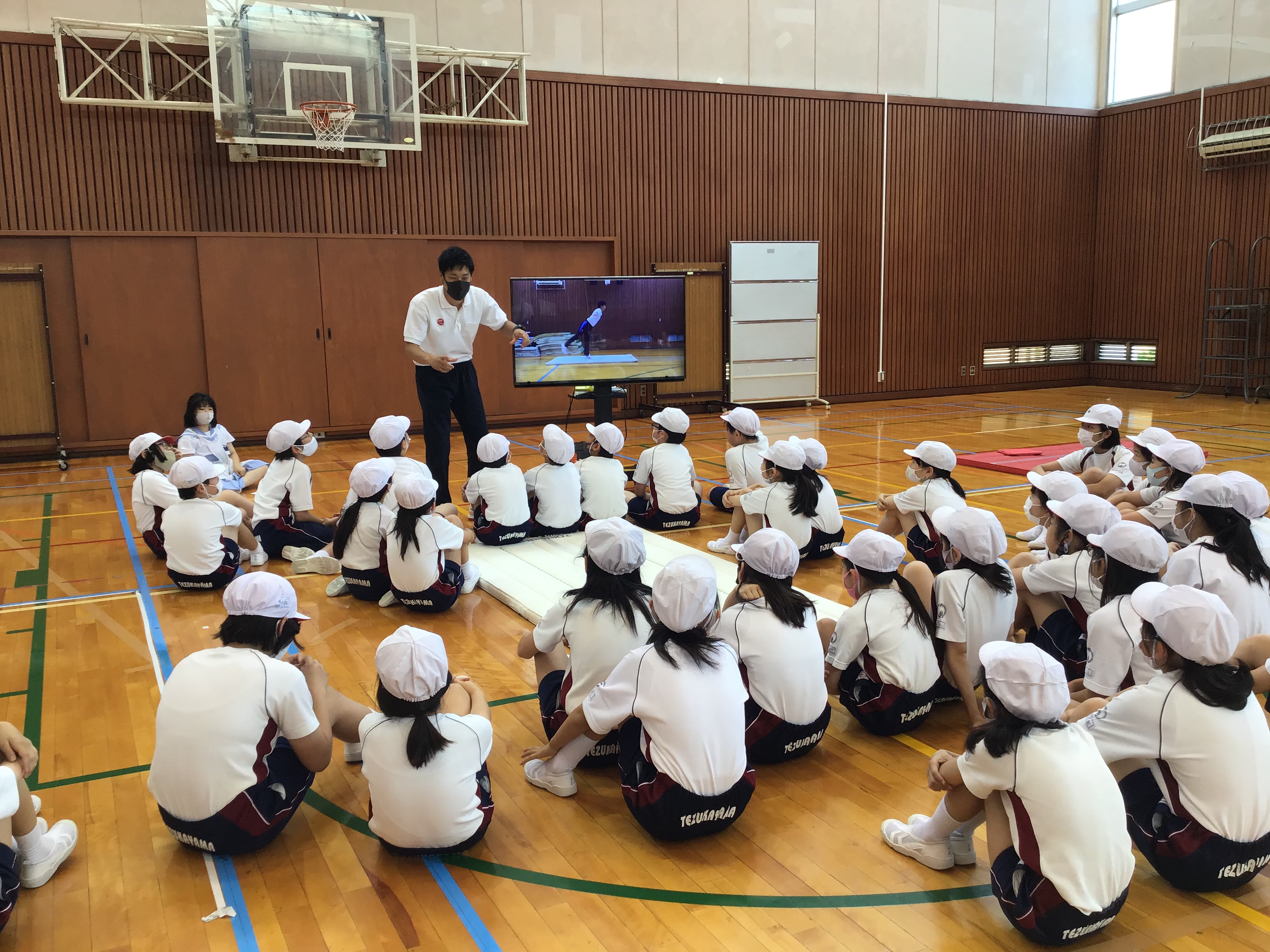 単元によって、体育にもiPadや大型モニターなどのICTを導入しています。今回、児童への映像提示でこだわったのが、運動をしている人の視点で動画撮影した点です。小学生くらいの年代では、神経系の高まりが著しく、他者が運動しているところを見るだけでも、自らが運動している感覚になり、動きの習得は大人に比べてとても早いです。まるで自分が運動をしているかのような視点の映像をみてもらい、感覚的に技をつかんでもらう狙いがあります。そのような「感覚」を大切に今後も授業を展開していけたらと思います。