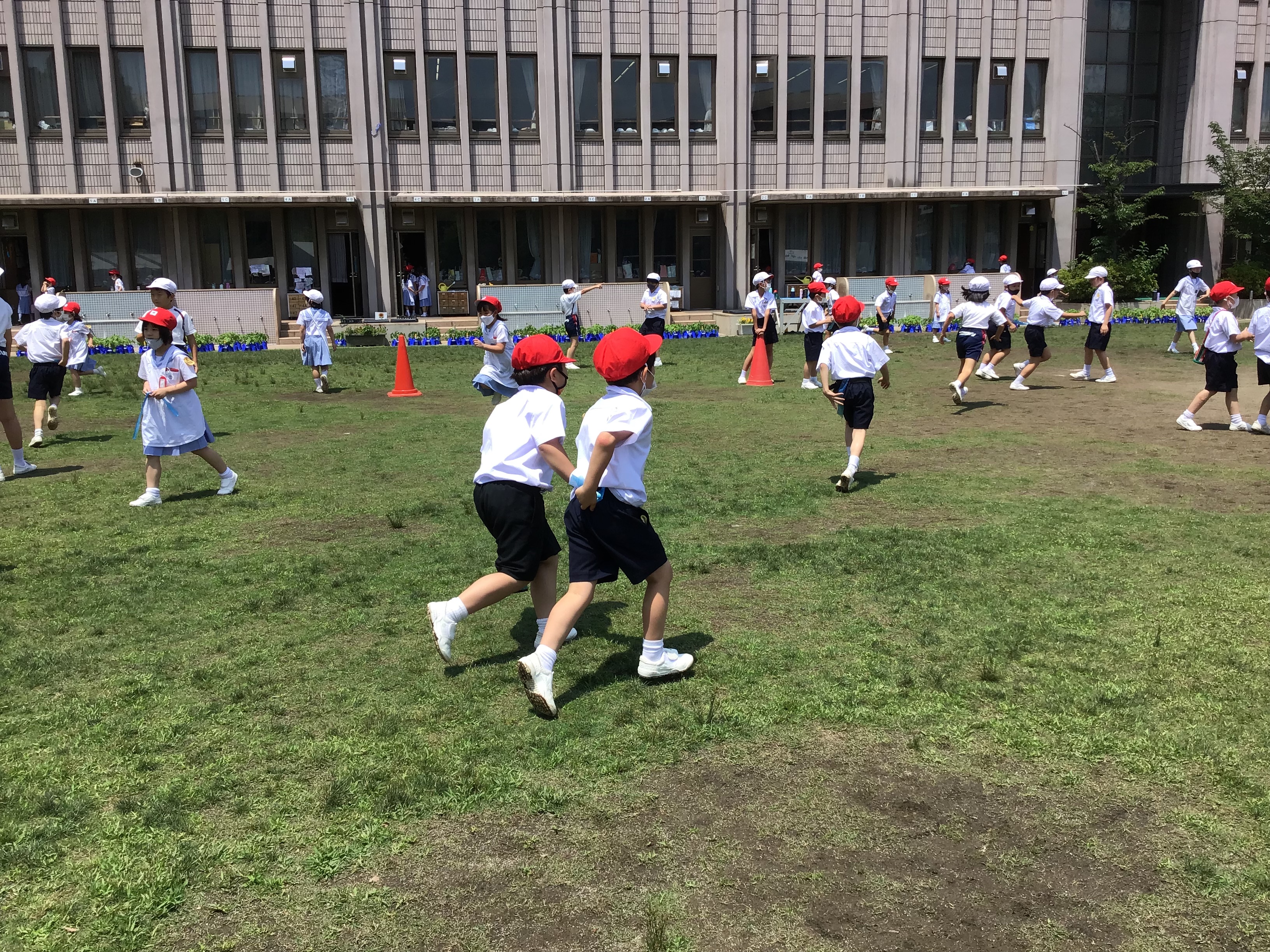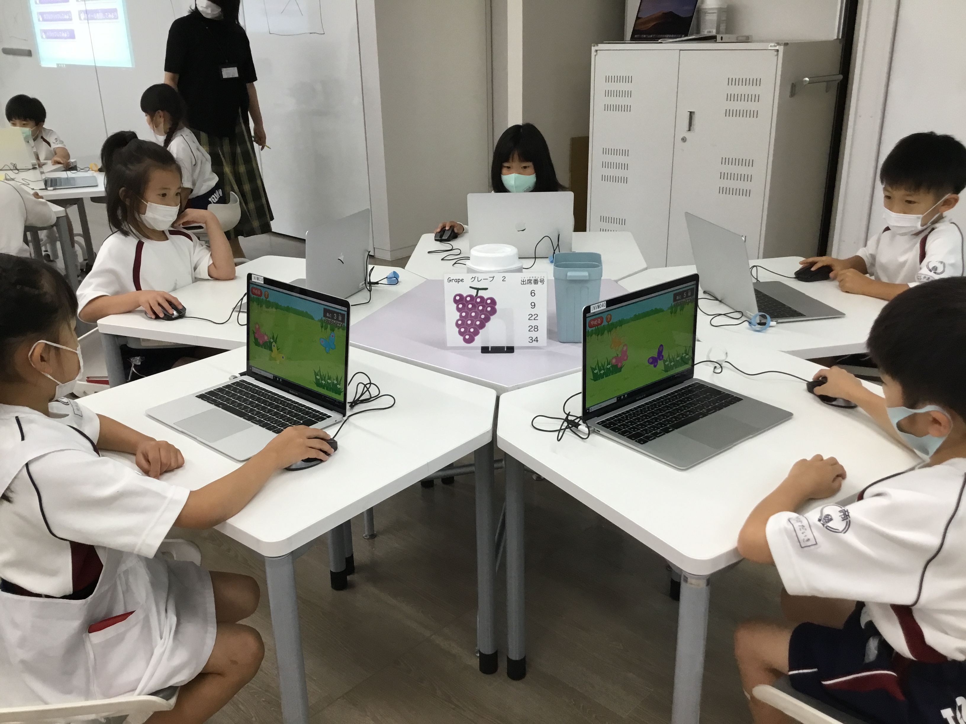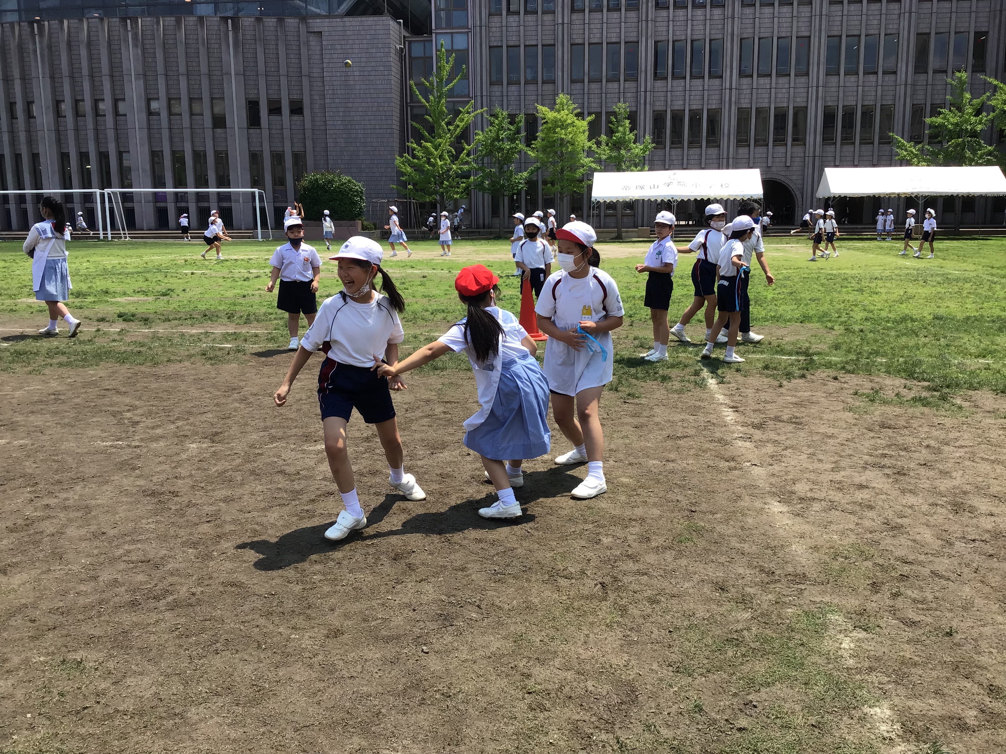 5年生の体育で器械運動「マット運動」をしました。4人一組となり、お互いの技を見合い、教え合ったり、伝え合ったり、動画を撮影し合ったりする授業でした。例えば、水平バランスなども自分では、地面に水平に腕をあげているつもりでも実際にはそうでないことがよくあります。自分の中で、どの感覚で出力すればまっすぐなのかを確認し、一つひとつの感覚のズレを認知し、修正していきます。そうして、自分の体を思った通りに動かせるようになっていきます。また、他者にアドバイスすることは、自分が実際に技をするときにそのポイントを意識するようになるため、自分にもポイントをフィードバックしていくことになります。グループ内で活発にアドバイスし合い、協働的に授業が進んでいきました。