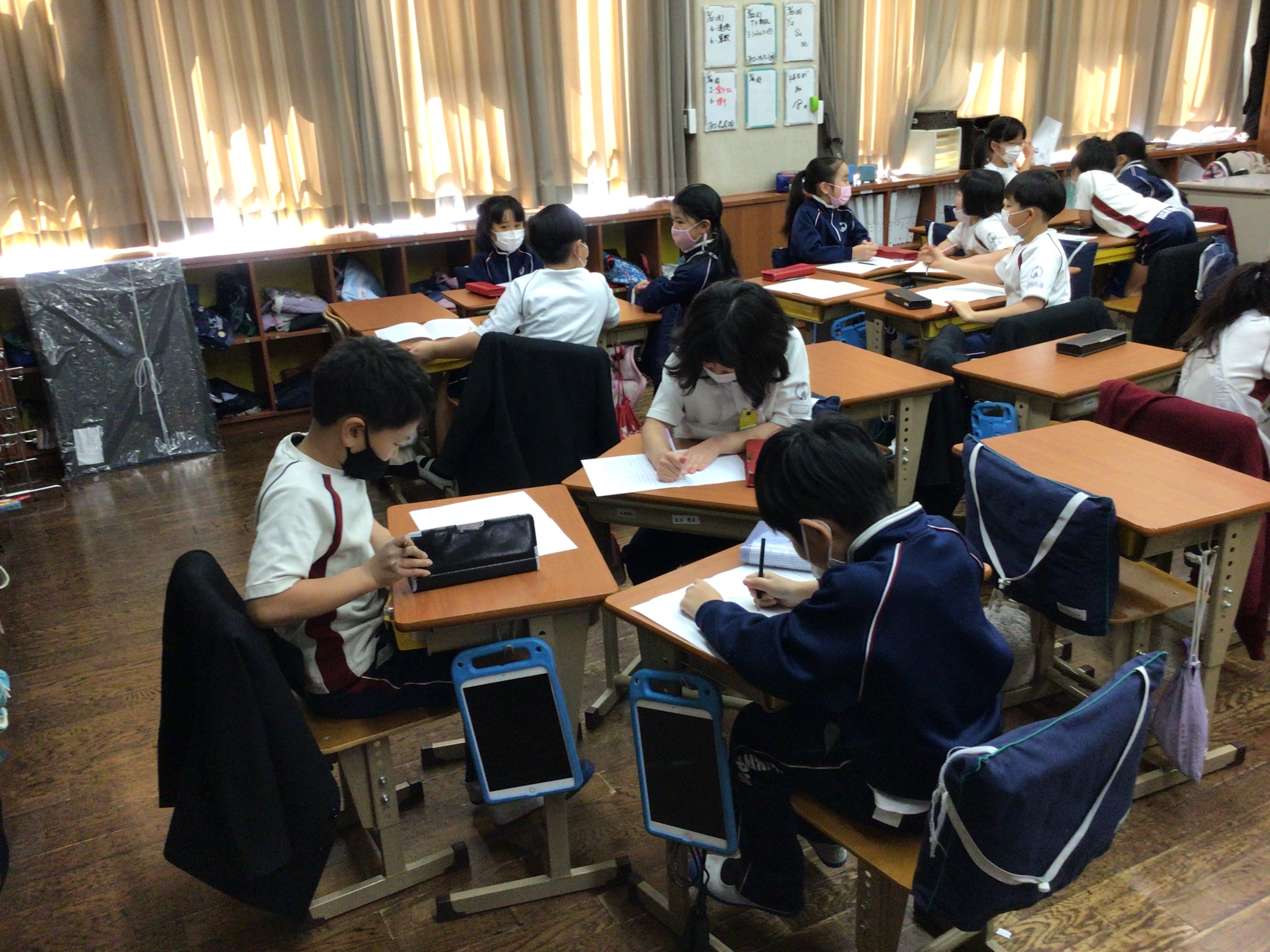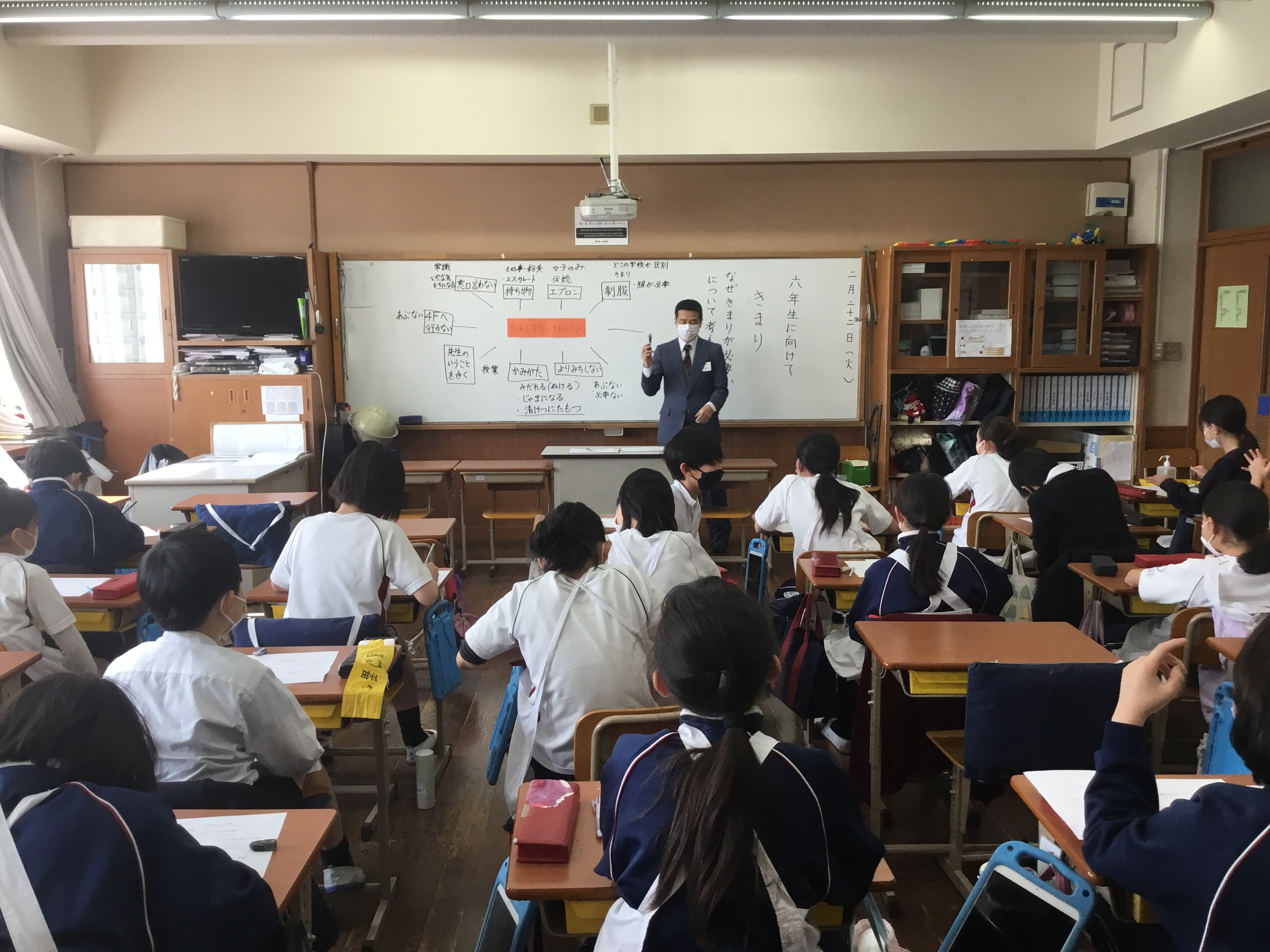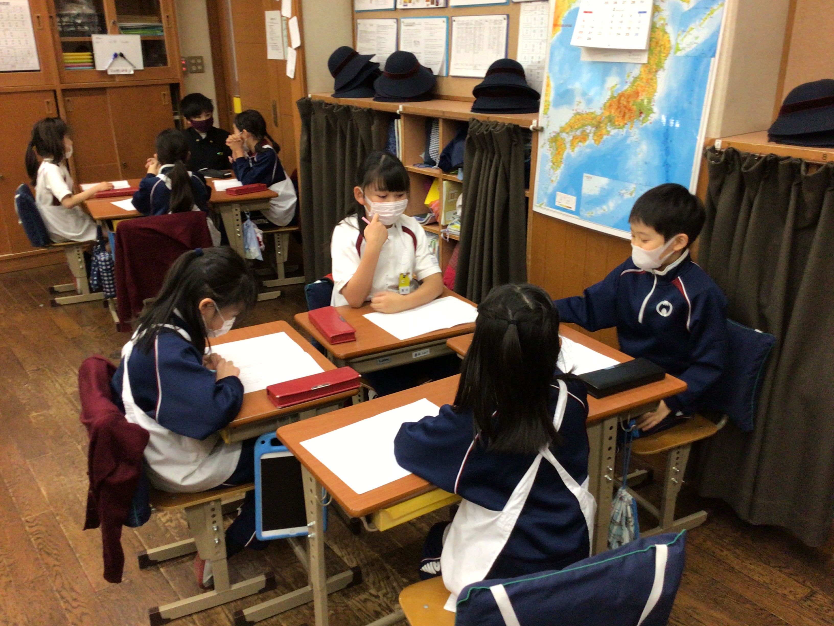 5年生の3クラスで、「なぜきまりが必要かについて考えよう」という学習を行いました。帝塚山学院小学校のきまりには、どんなものがあるかについての再確認をし、その理由について考えてみました。今回は、学院オリジナルの道徳科教材を使い、その後、グループでの恊働学習に取り組みました。きまりの理由について、一人ひとりがしっかりと考えることができており、もうすぐ最高学年になる5年生のみんながすごく頼もしく感じました。今後、下級生に今回の授業で考えたことなどを伝え、さらにより良い学校にしていってもらいたいと思います。