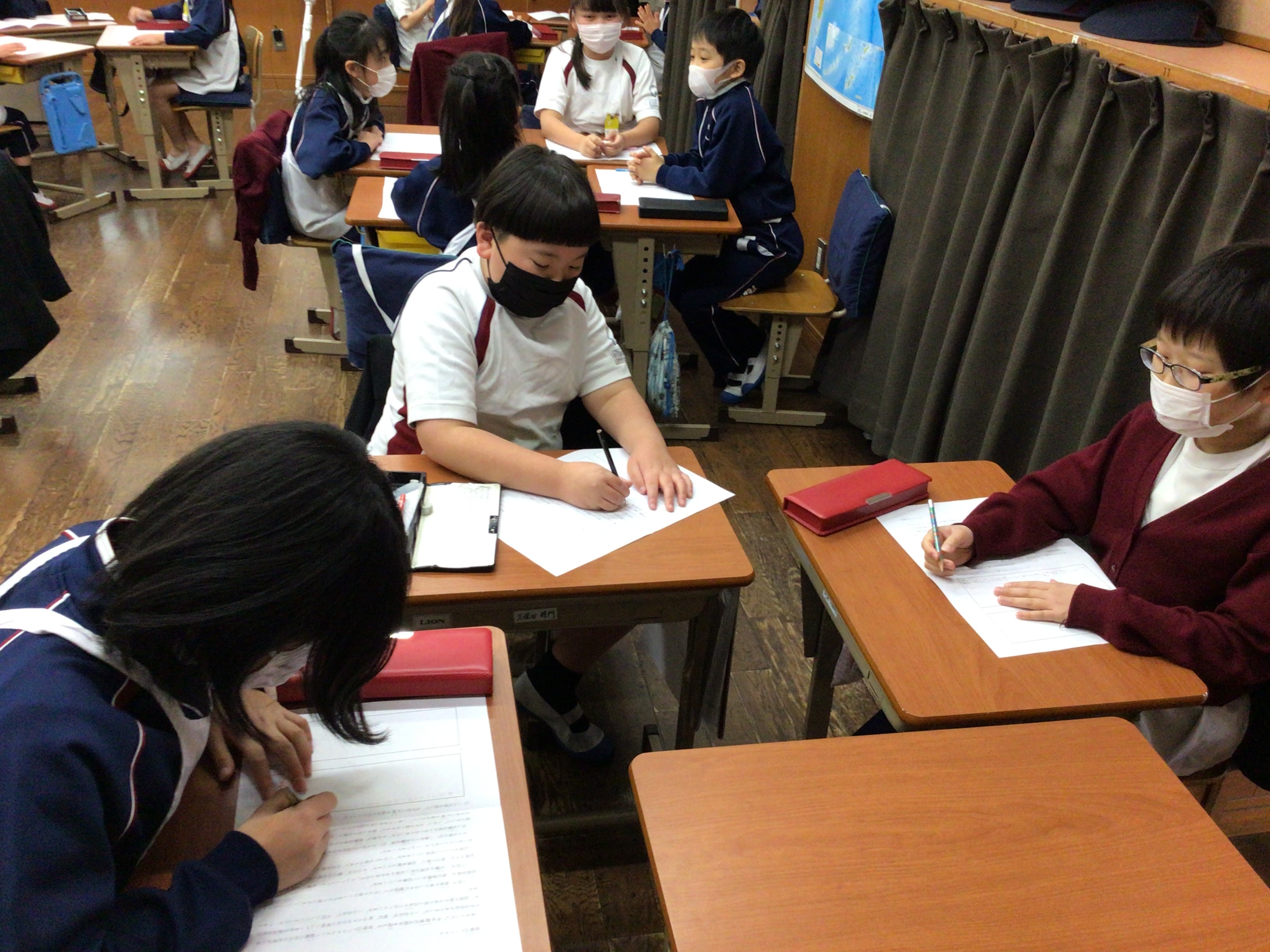 本日、3年C組で道徳科オリジナル教材を用いた、恊働学習を行いました。3年生から来年6年生になる5年生に向けて「こんな6年生になって欲しい」と手紙を書き始めました。 向かい合わせにならないことや、活動の時間を決めて、グループで話し合いました。グループでは、手紙の内容や、6年生のあり方について考えました。 5年生は、手紙の返事として、来年に向けて決意の言葉を書いて1つの授業が完成です。3年生はお手紙を渡す日を楽しみにしていました。