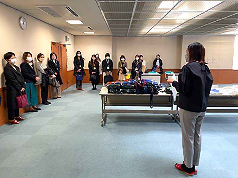 次に衛生面について、給食場の職員の方々の身支度の整え方や日々注意していることなどのご説明がございました。例えば、異物混入を防ぐために、調理場の皆様は青色の手袋をつけておられるそうです。食材には青色がないことから、万が一手袋が欠けた時に発見しやすいという利点があるそうです。あらゆる異物混入の可能性を想定し、対策を講じておられ、感服いたしました。