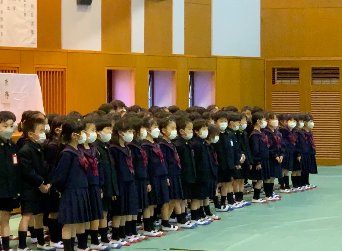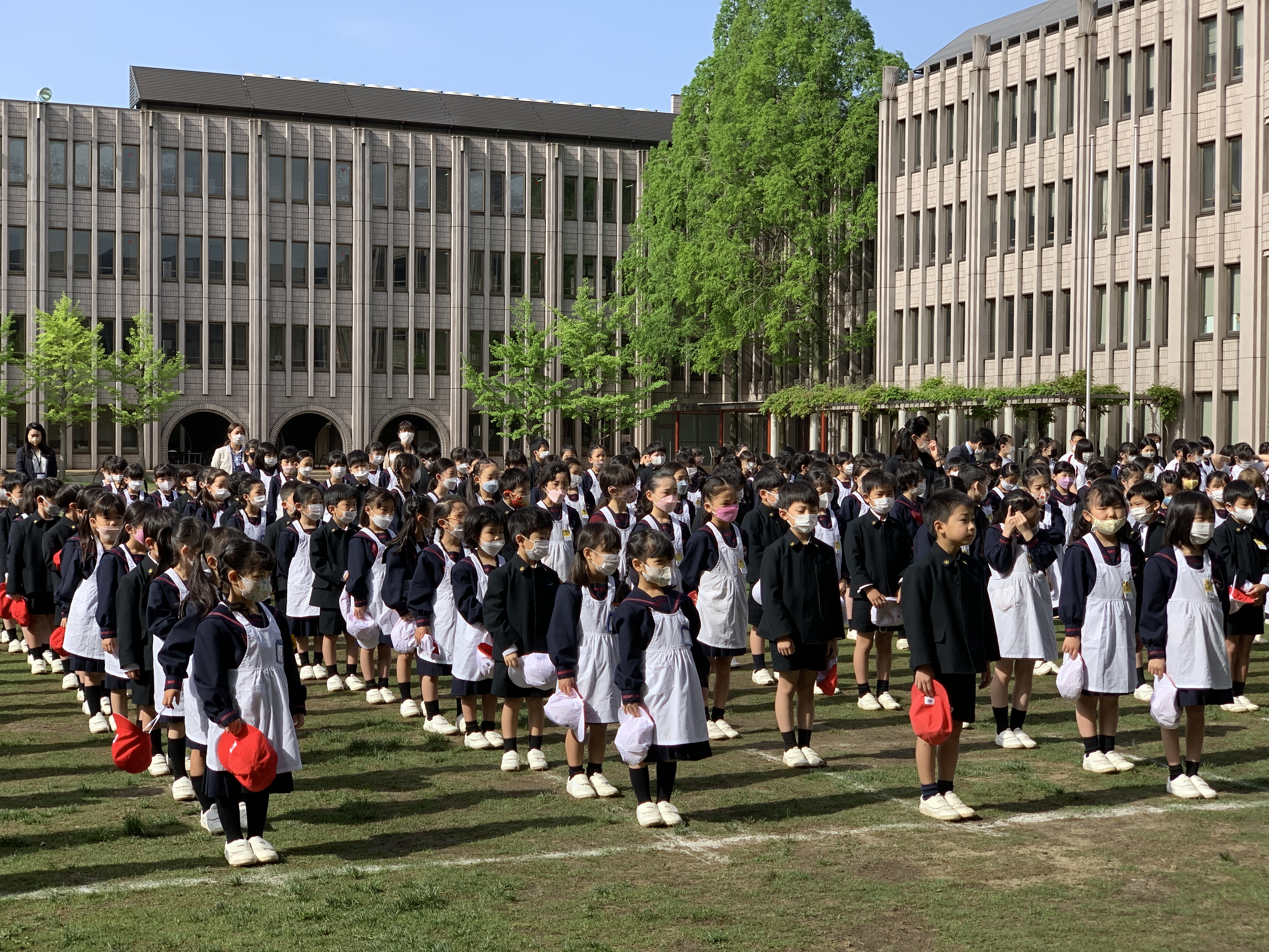 1、3年生にとっては、初めての外朝礼でしたが、しっかり列を整えて並ぶことができていました。