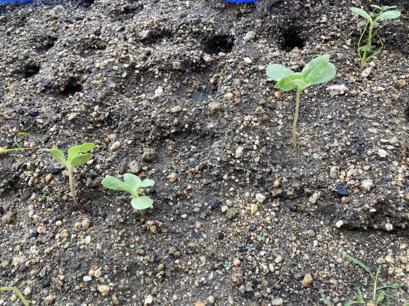 1年生の毎日の水やりのおかげで、どのクラスの花壇にもたくさんのひまわりの芽が出てきました。