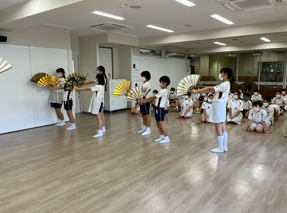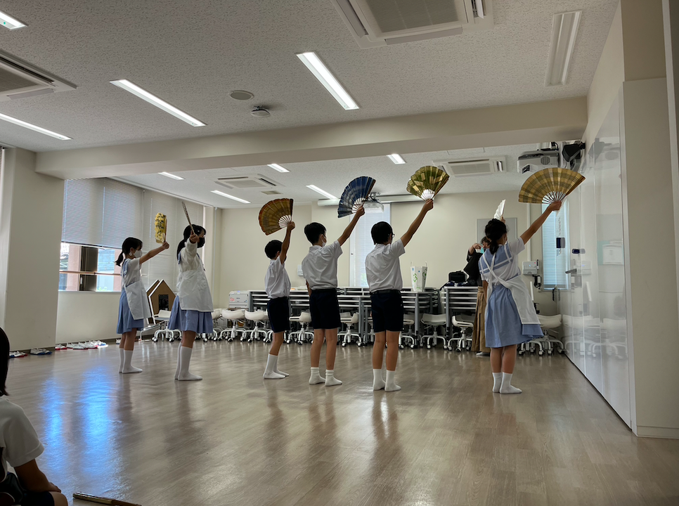 5年生対象『能』体験学習。発表会に向けてお稽古が始まりました。