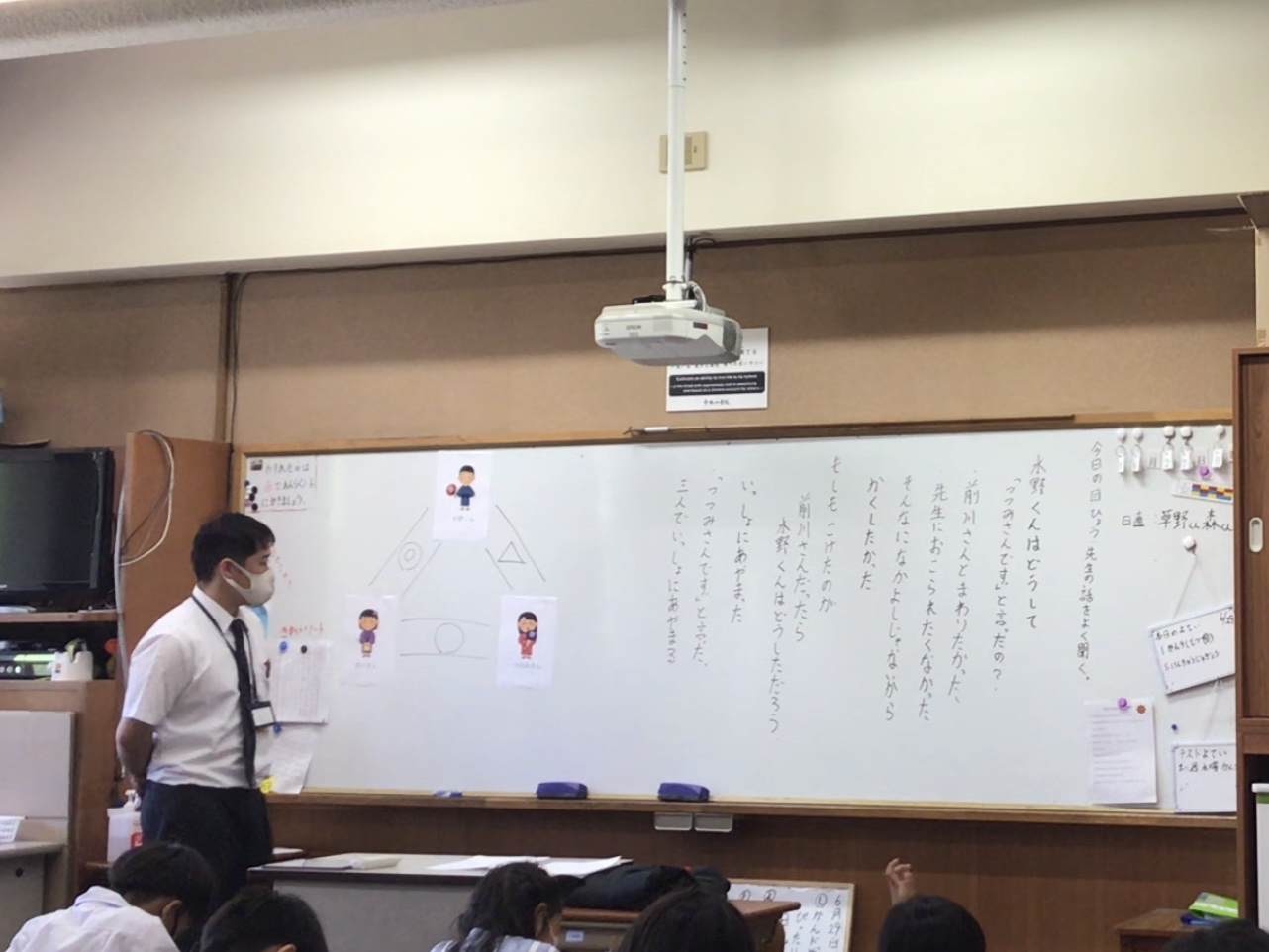 登場人物の水野くんの発言や行動の理由を考えて、どうしてその行動をしたのか、児童たちが意見をたくさん発表してくれました。