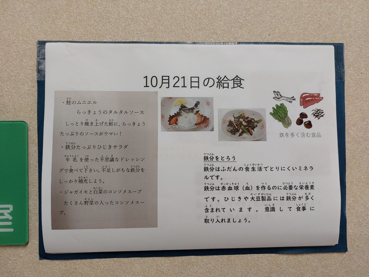 10月21日(金)教学委員主催・第三回給食試食会を第一回・二回と同様、感染対策を講じた上で開催させていただきました。