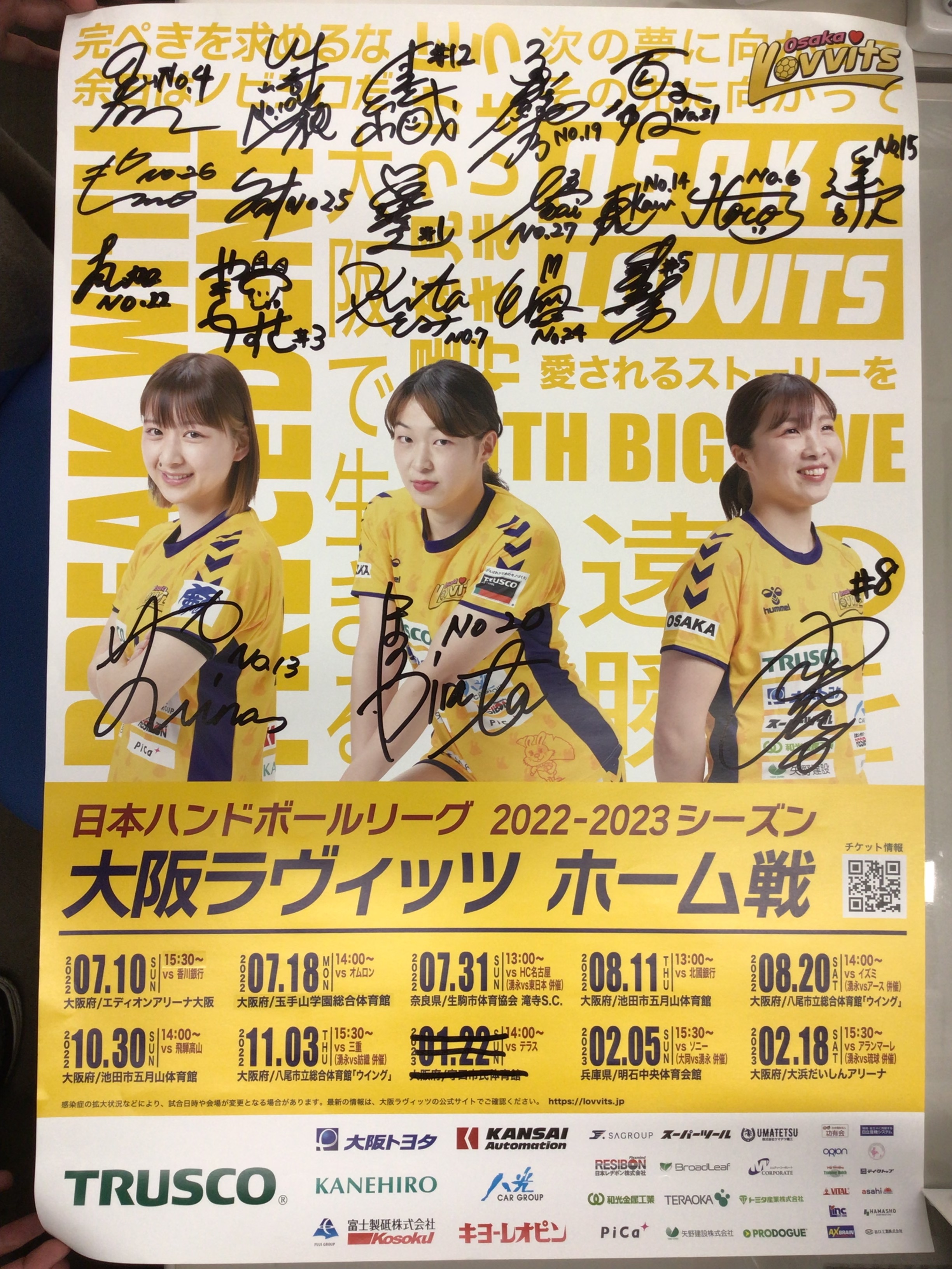 写真のポスターは大阪ラヴィッツの方々が帝塚山学院小学校のためにサインまでかいてくださいました。