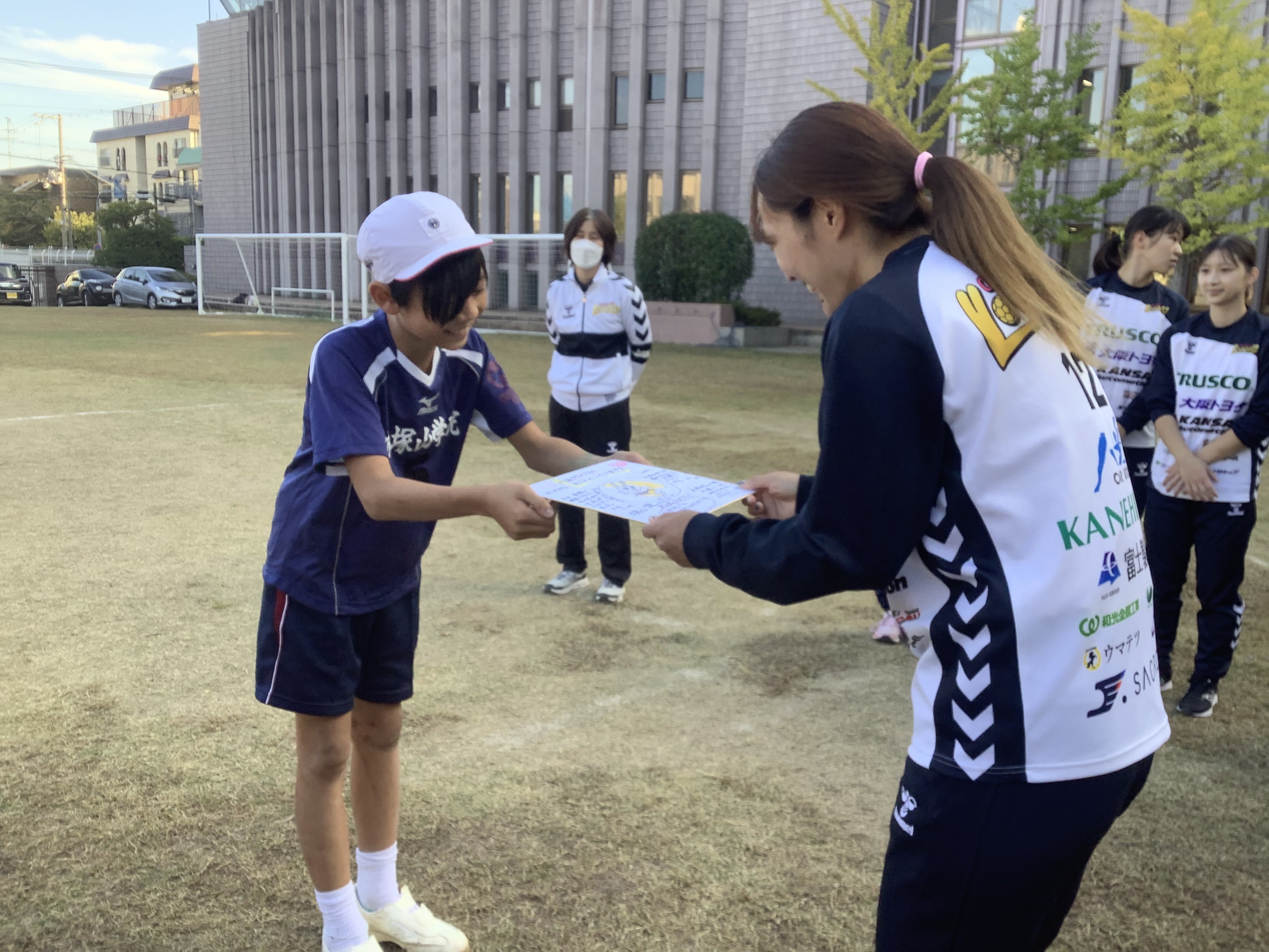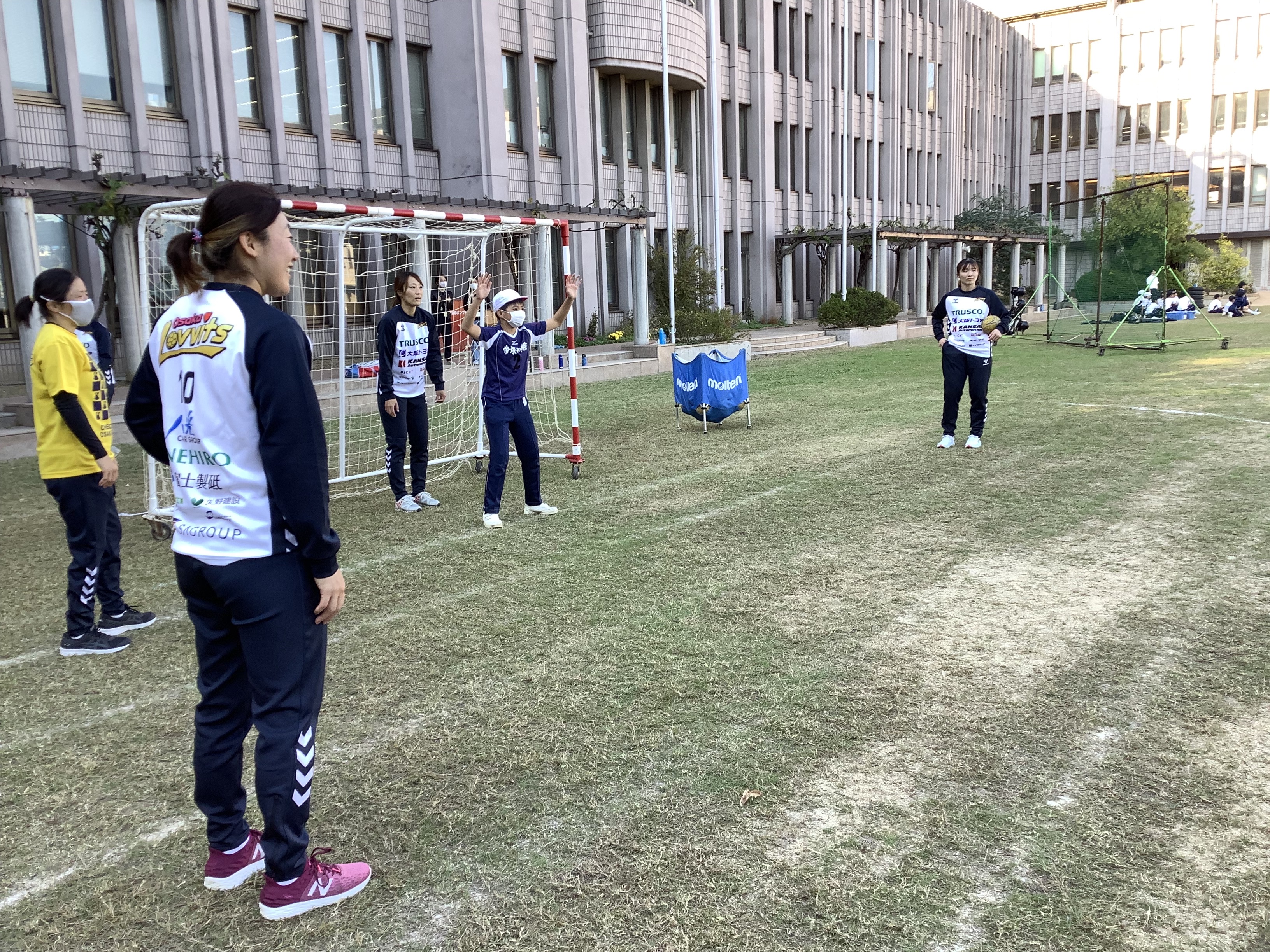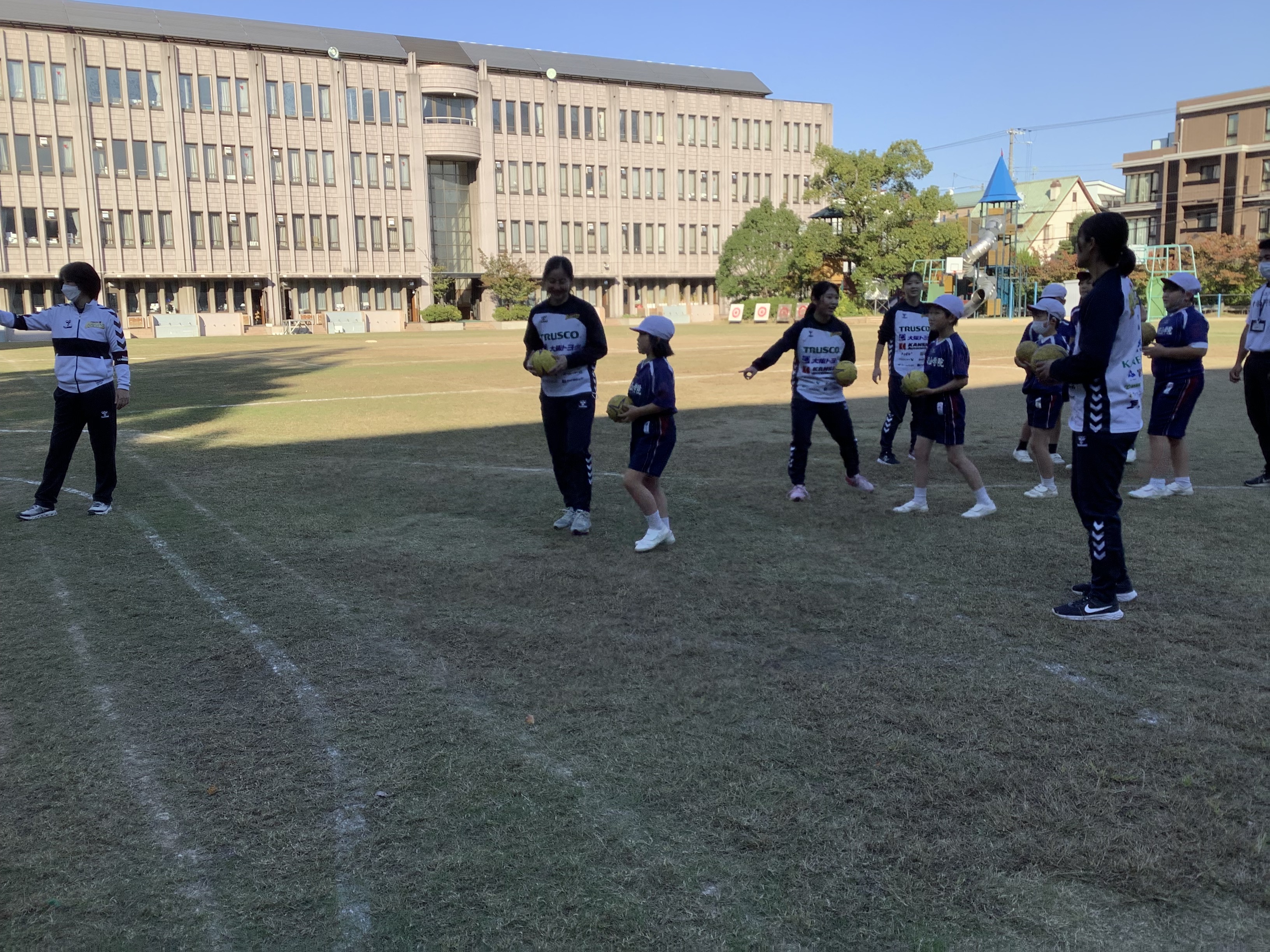 10月28日(金)のクラブ活動の時間に、社会人女子ハンドボールチームの「大阪ラヴィッツ」の選手やスタッフの方々がハンドボールを教えに来てくださいました。ハンドボール部の子どもたちは本物の選手たちに会えてとても大喜びしていました。普段教えてもらえないような様々な技術やハンドボールの楽しさを学ぶことのできた、とても貴重な経験となりました。