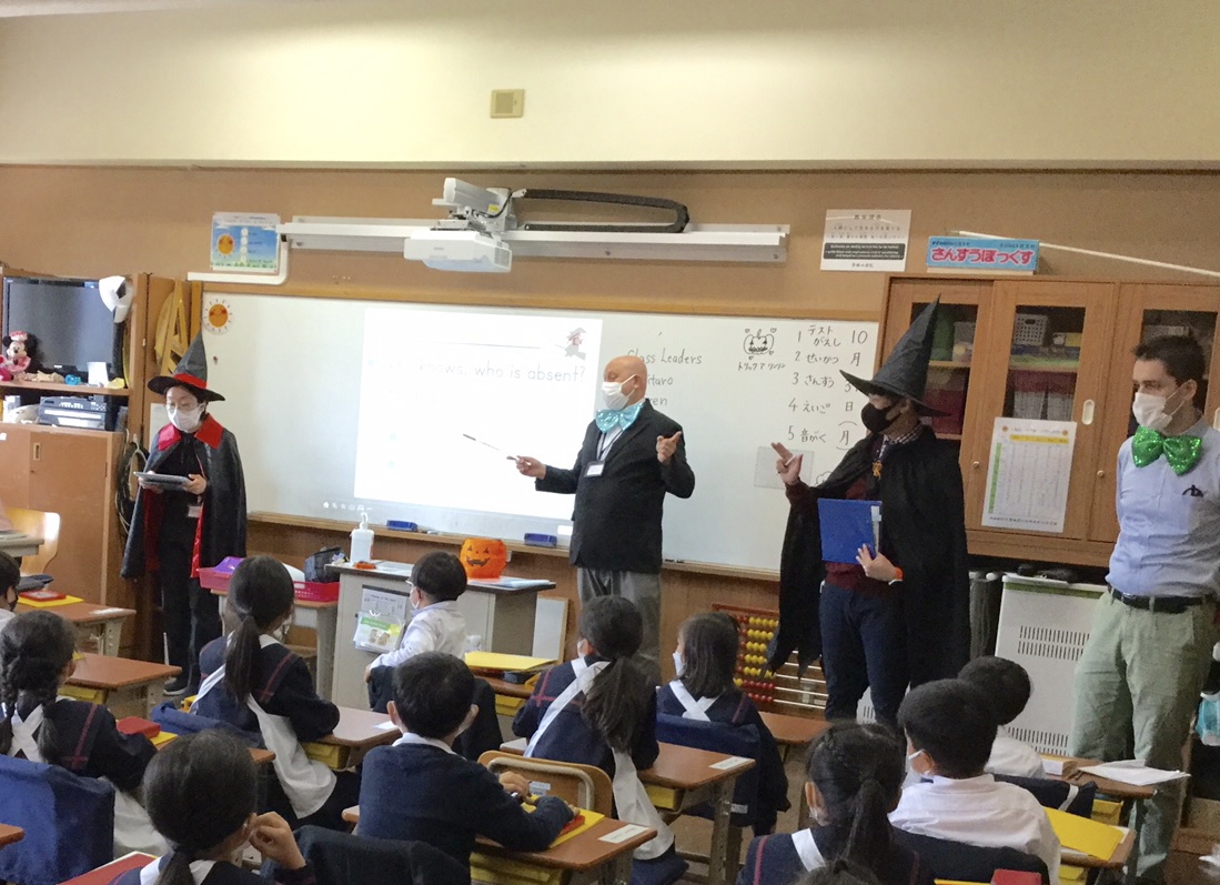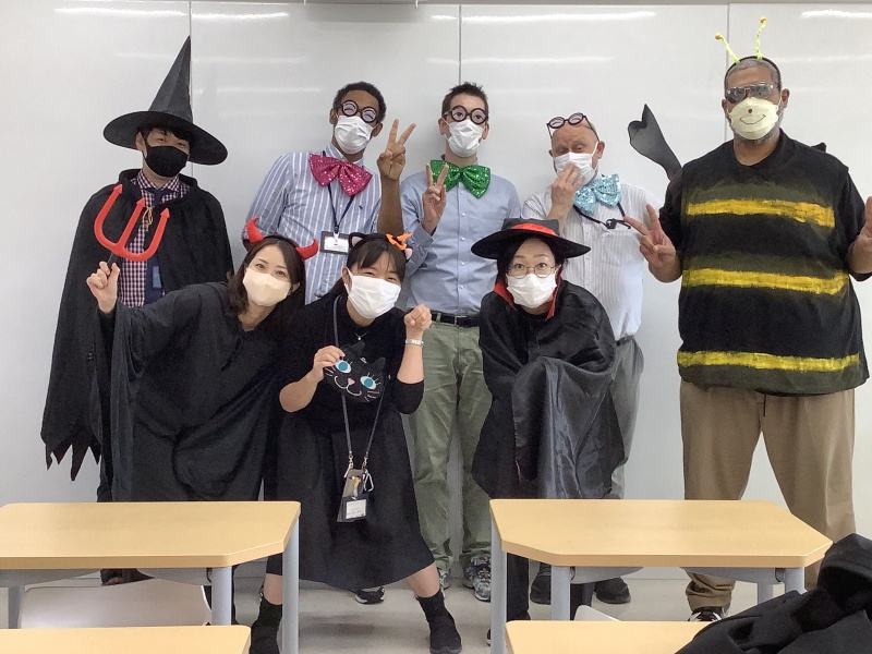 今日はHalloweenということで、英語科の教員たちは仮装をして英語の授業に行きました。
