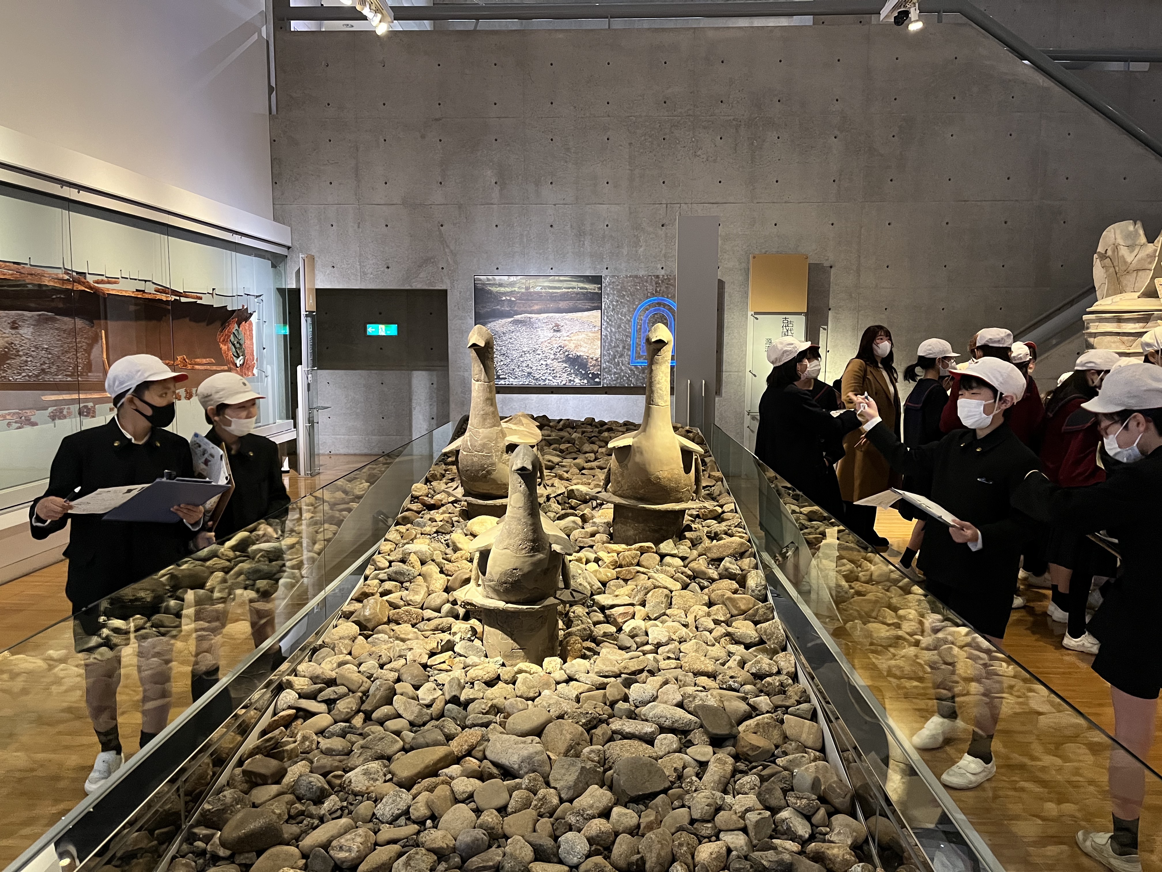 社会で学んだ歴史について、ワークシートを埋めながら館内を回りました。「これが埴輪か!」や「思ったより大きいな」など、子どもたちは実物に感動し、目を輝かせていました。