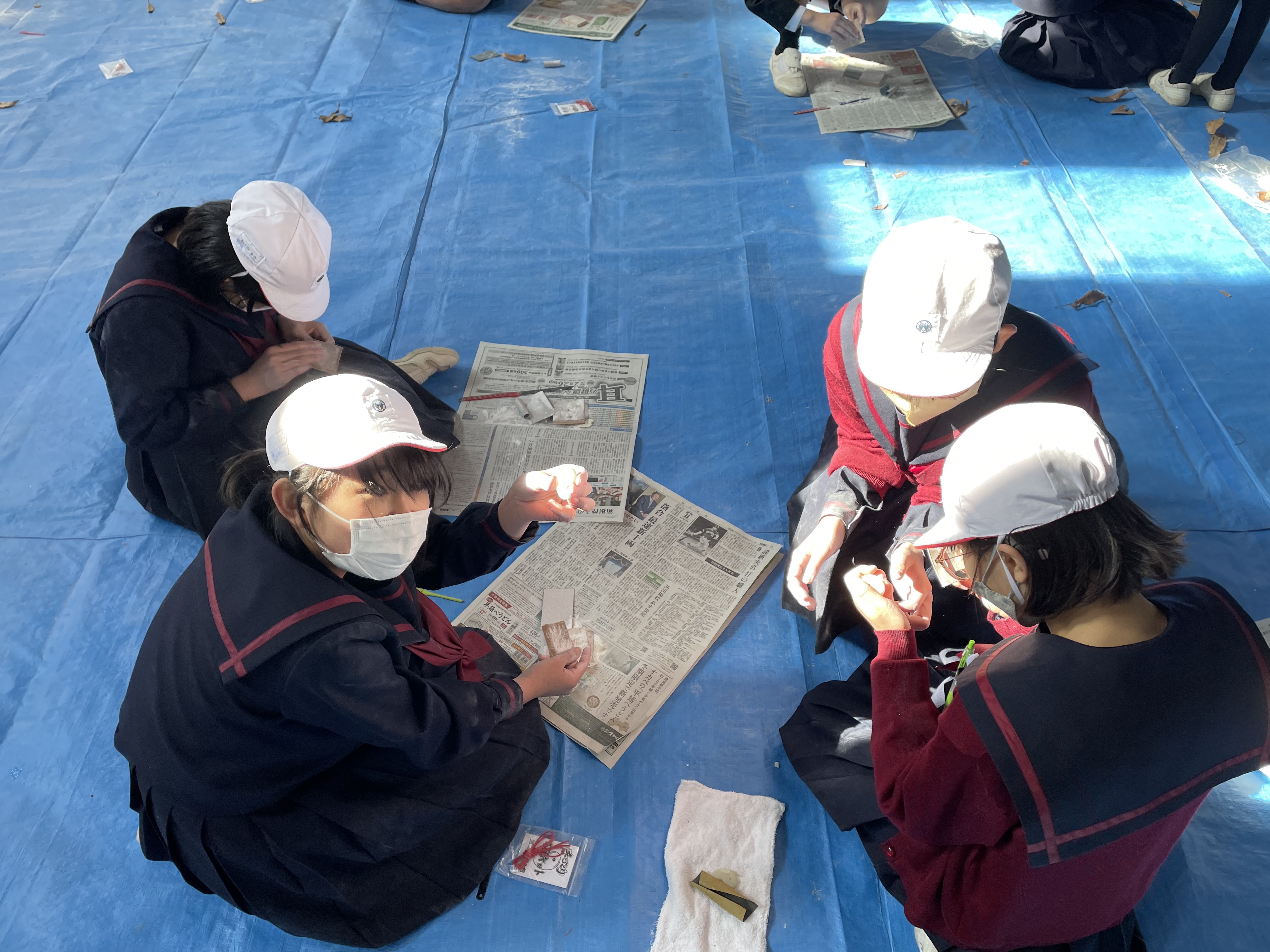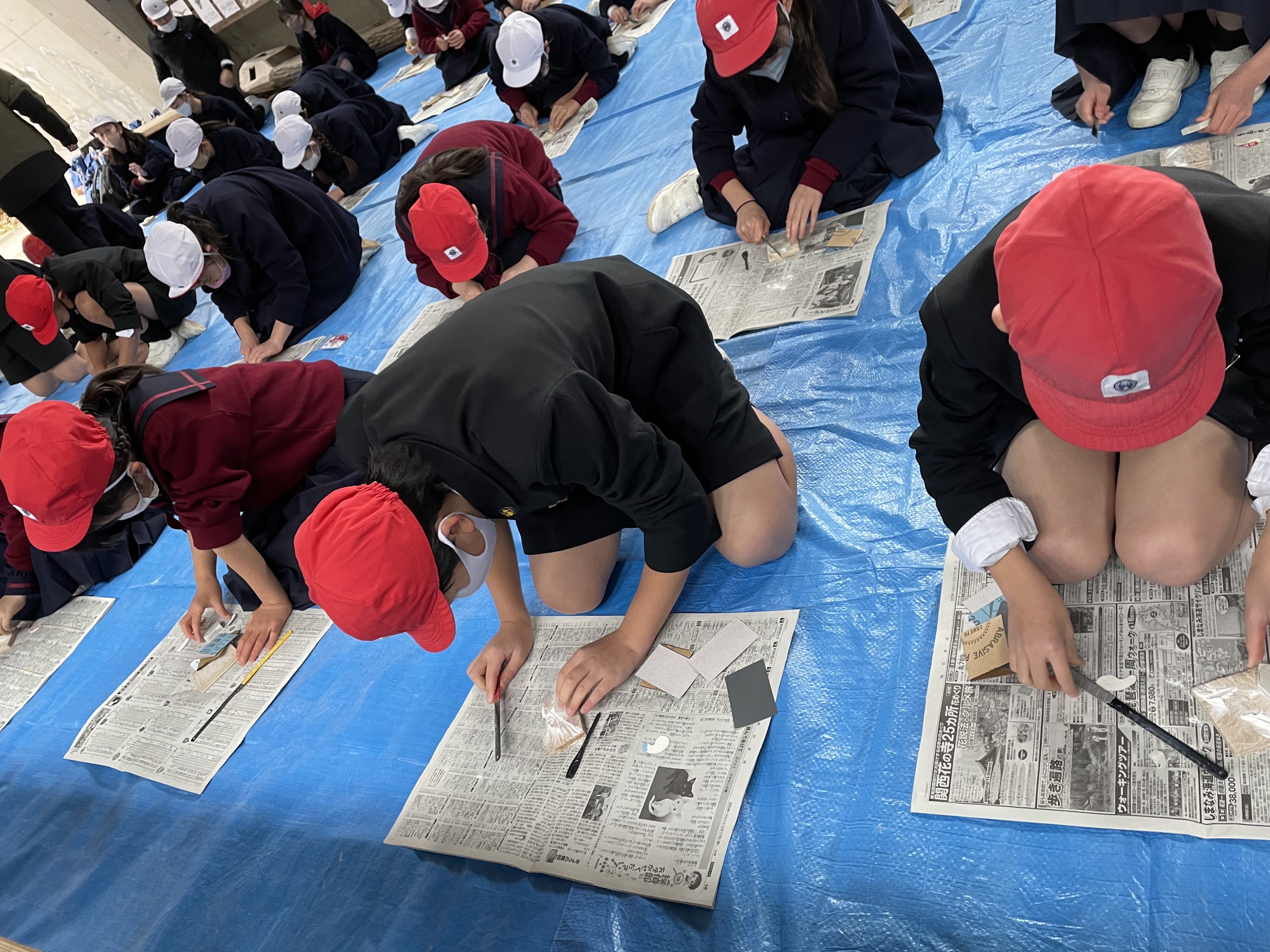 勾玉作りでは、軽石から理想の形になるまで、小さいのこぎりで切ったり、やすりで削ったりしました。一人一人色も違うようで、とても喜んでいる様子でした。