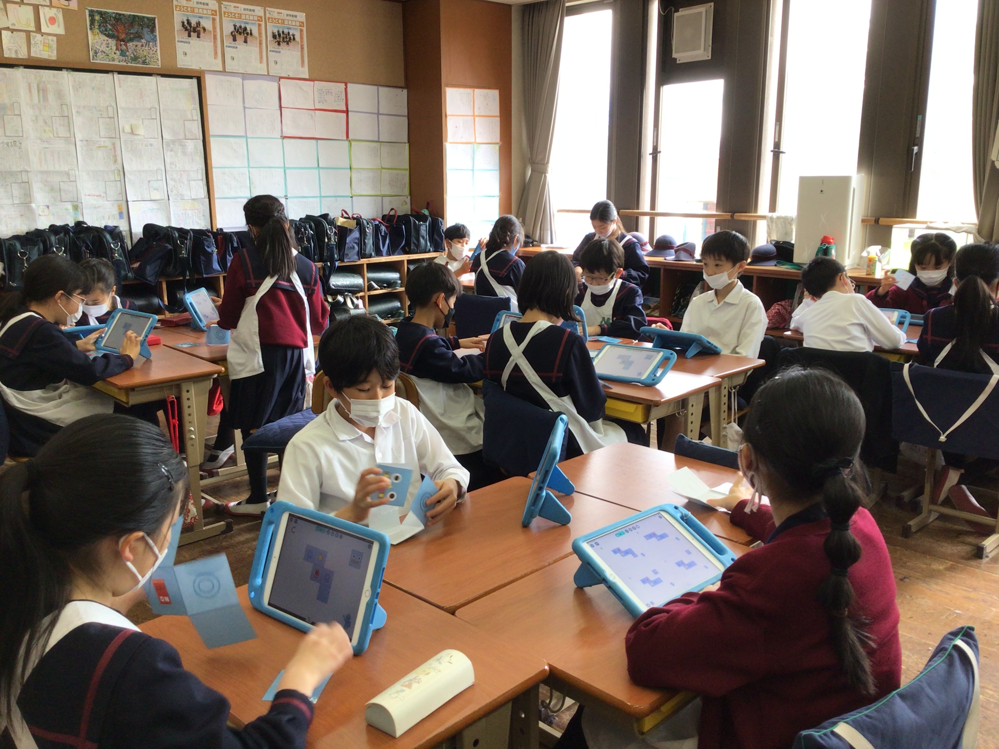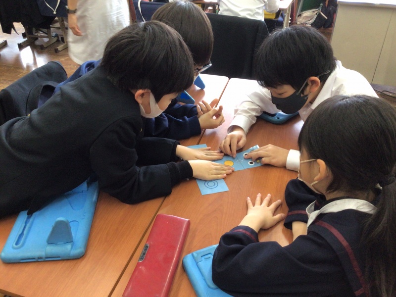 校舎内にある「うさぎとかめ」から、学校の歴史を知り、童話にある「うさぎとかめ」についてみんなで考える時間をとりました。
