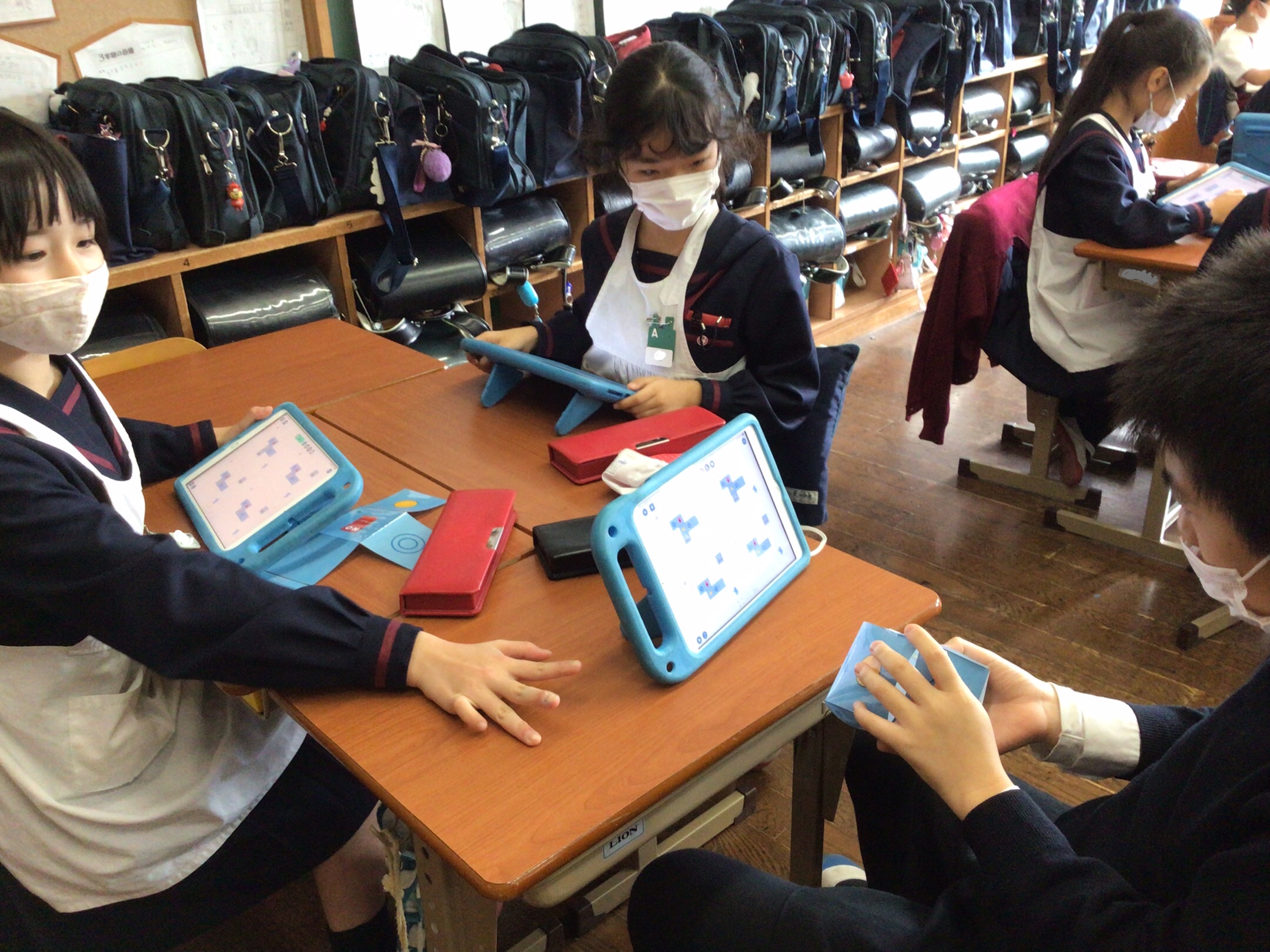 4年生の算数で、ロボットの頭の展開図を作りました。