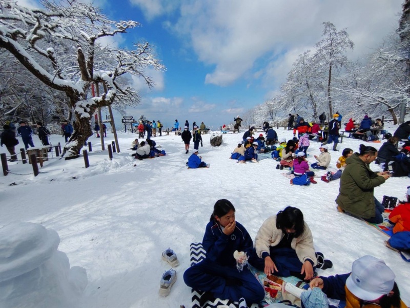 とても寒い中、みんなで励まし合って頂上まで登り切ることができました。