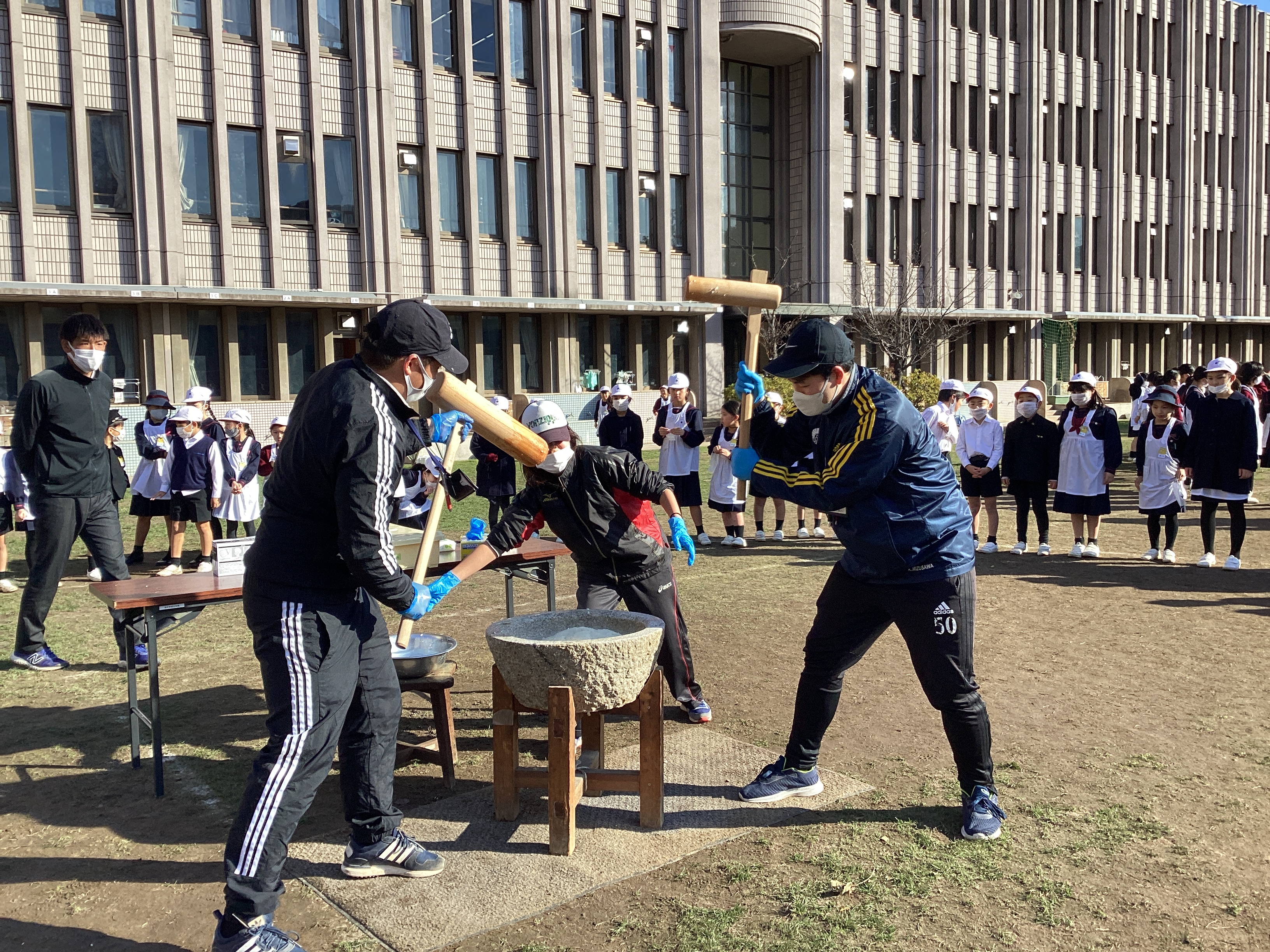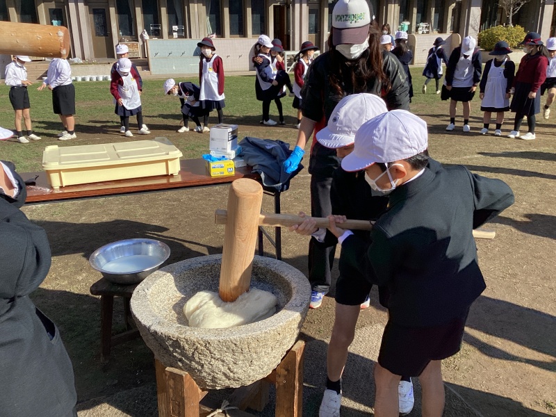 本日、帝塚山学院小学校伝統のもちつきが4年ぶりに行われました。