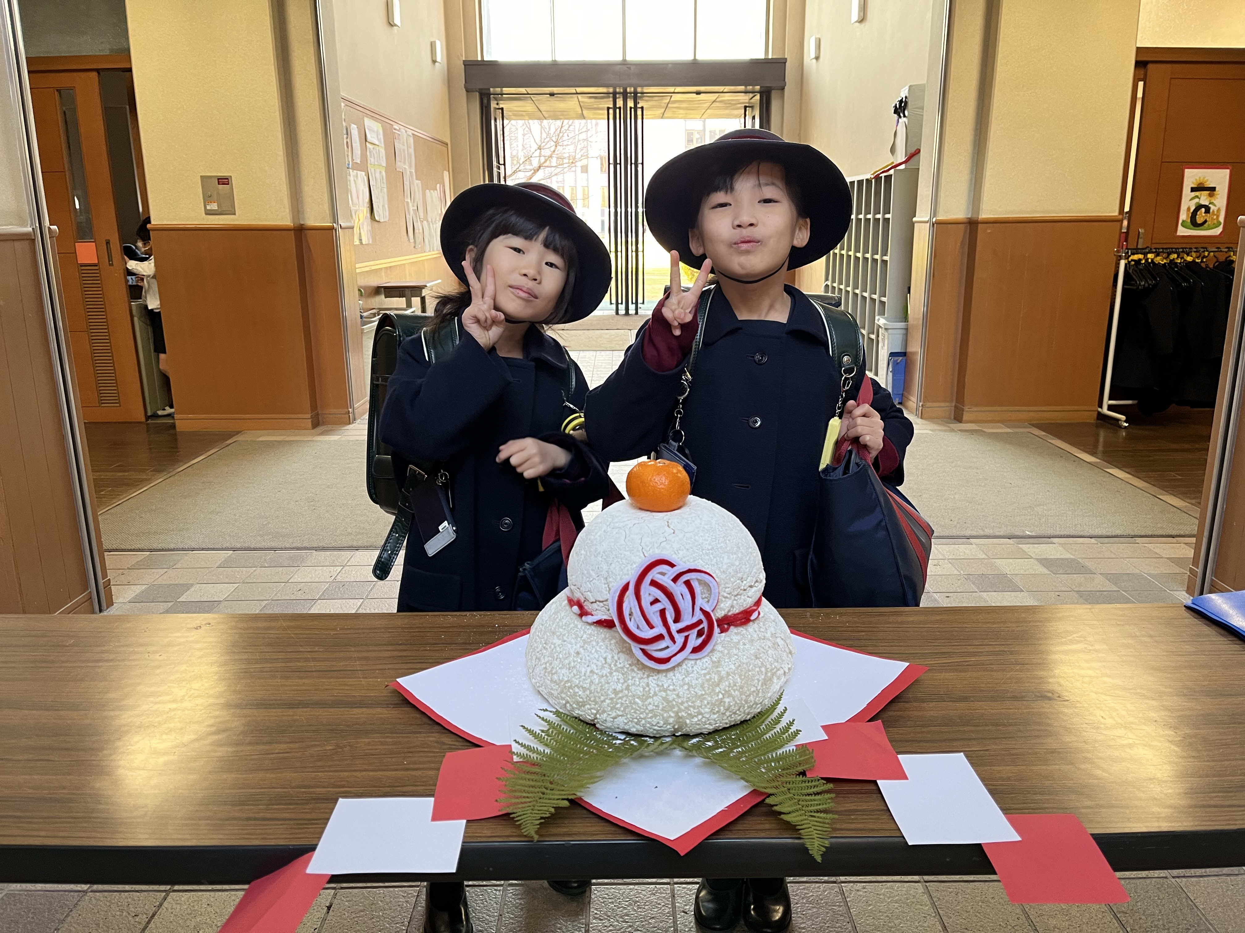 今年は6年生が、つきあがったおもちを鏡餅にしました。