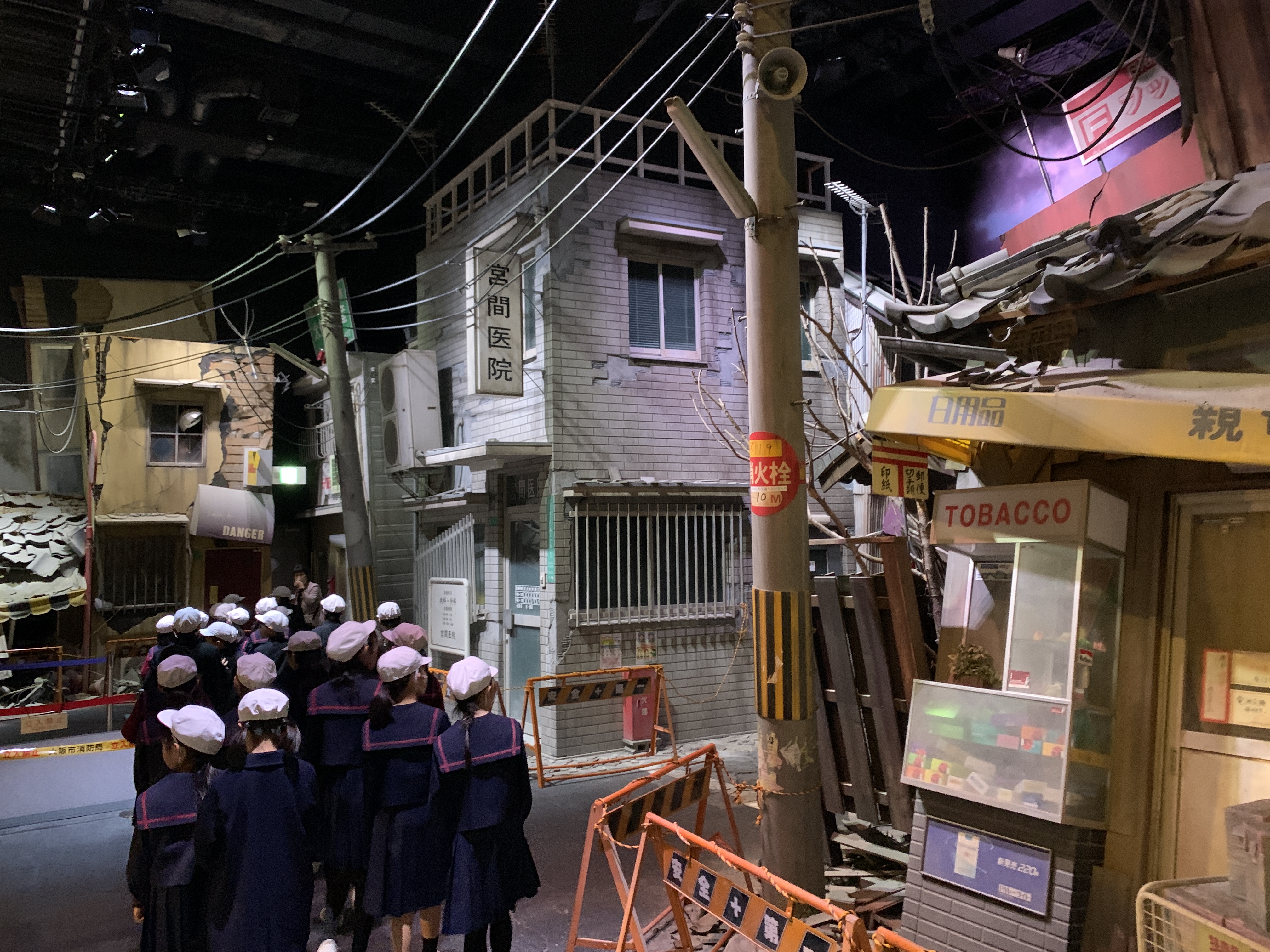 実際に震度7を体験したり、震災後の街並み(再現)を歩いたり、被害にあった人のインタビューを見たりしました。