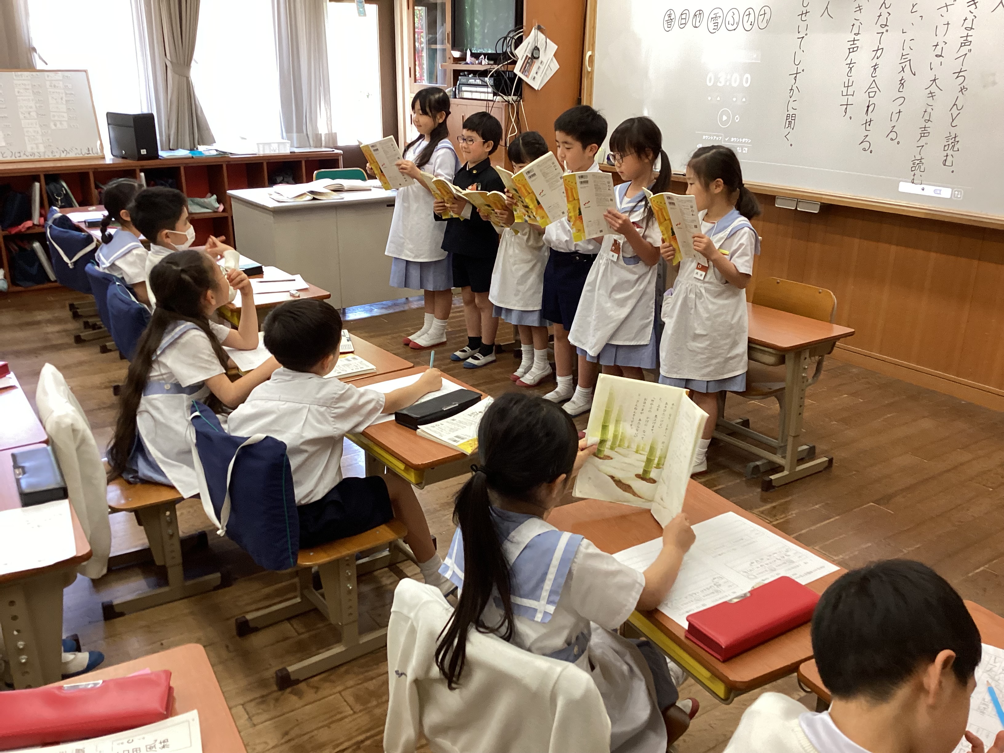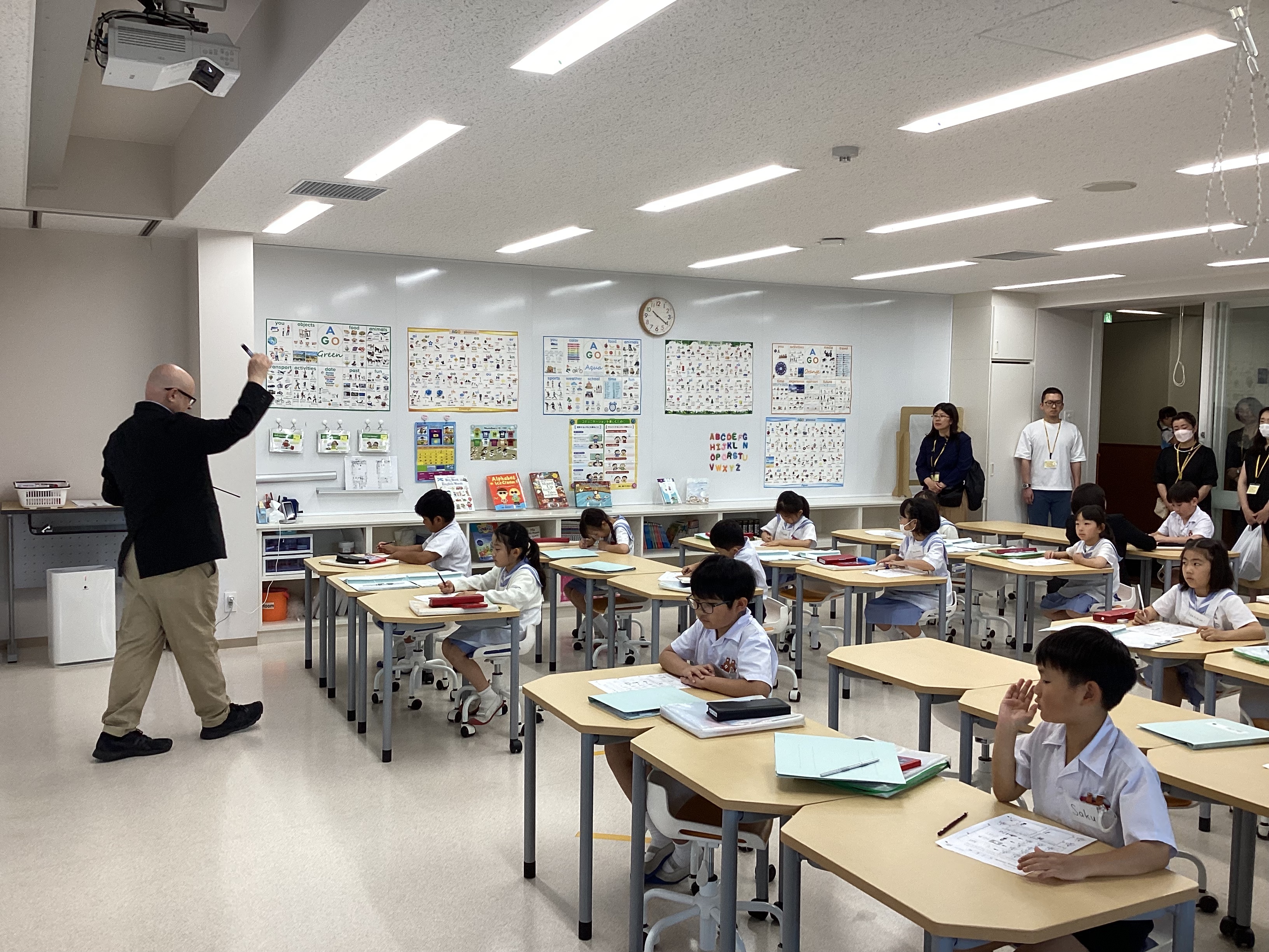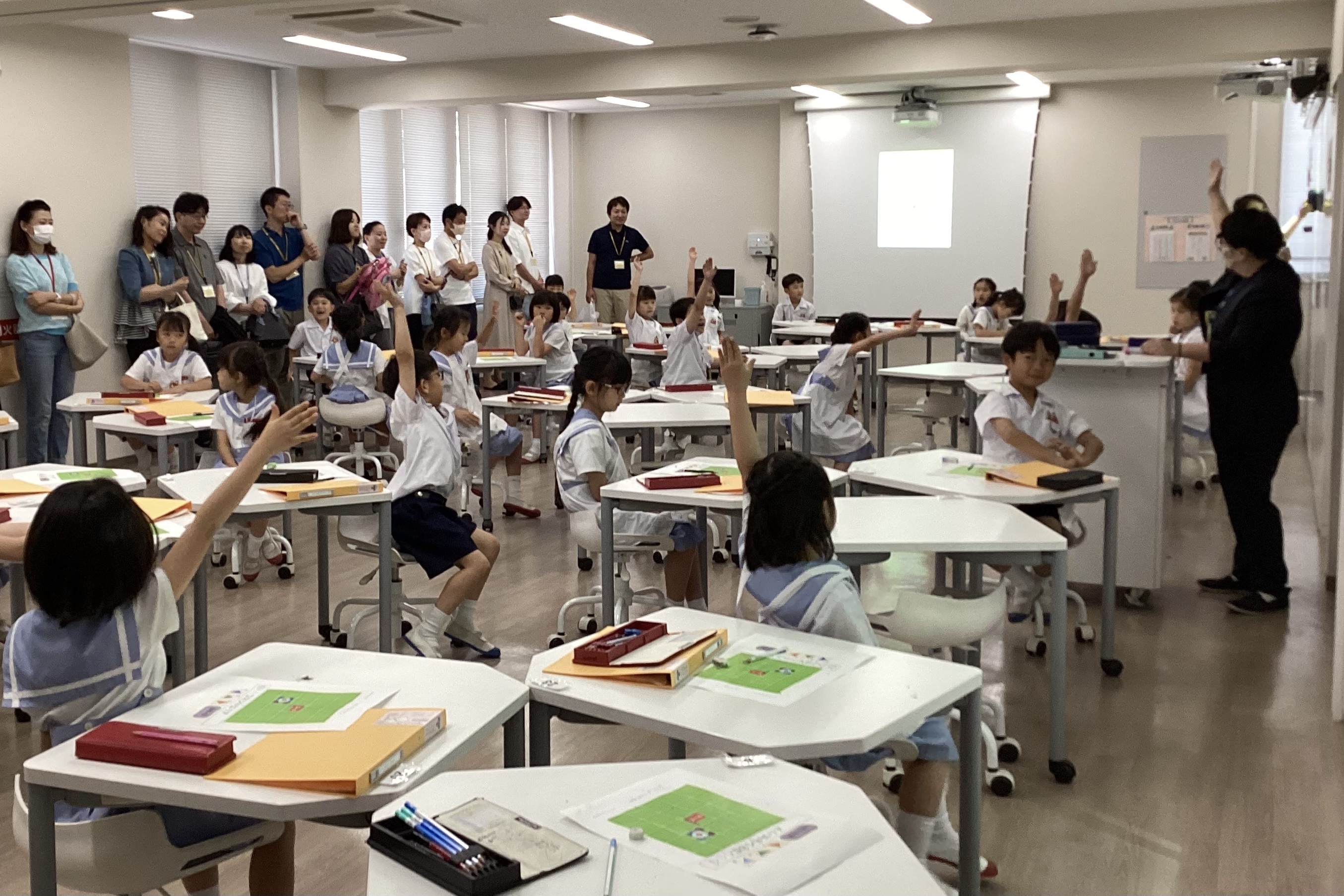 たくさんの保護者の方に見守られている中、少し緊張している様子もありましたが、積極的に授業に取り組む様子が見られました。